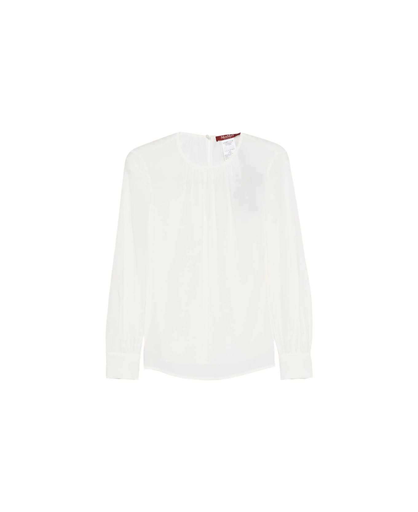 white long sleeves round neck fitted cuffs gathered detail sheer