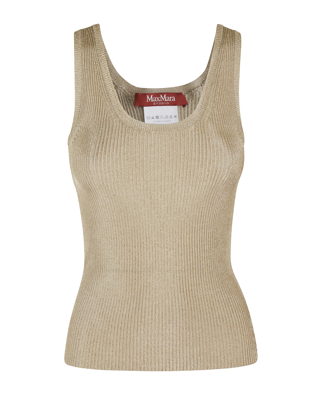 Hardy tank top - Max Mara Studio - Gold color - Ribbed lurex fabric - Round neckline - Shoulder straps - Regular fit