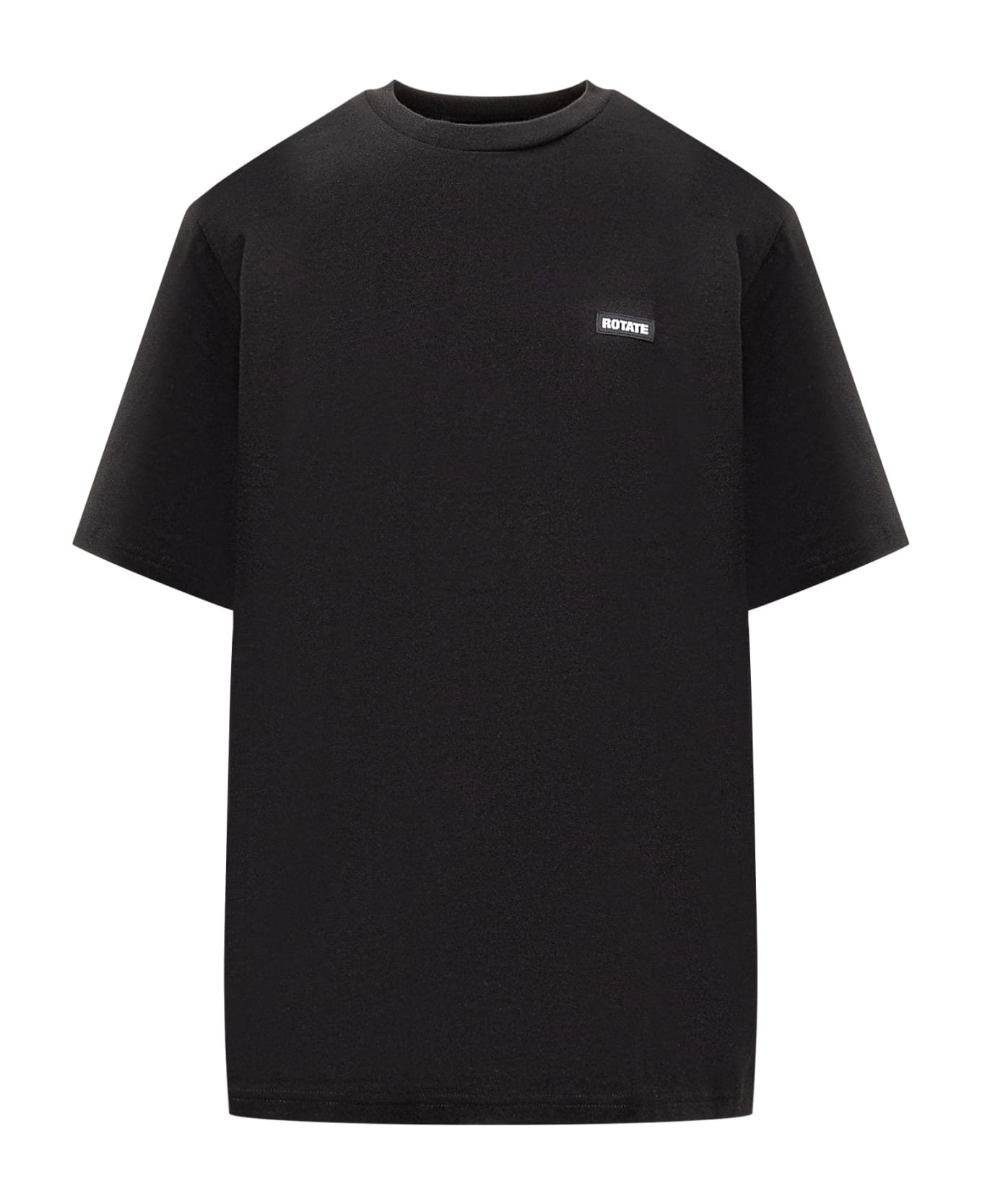 Black cotton t-shirt. Crewneck. Logo on the front. Oversized fit.