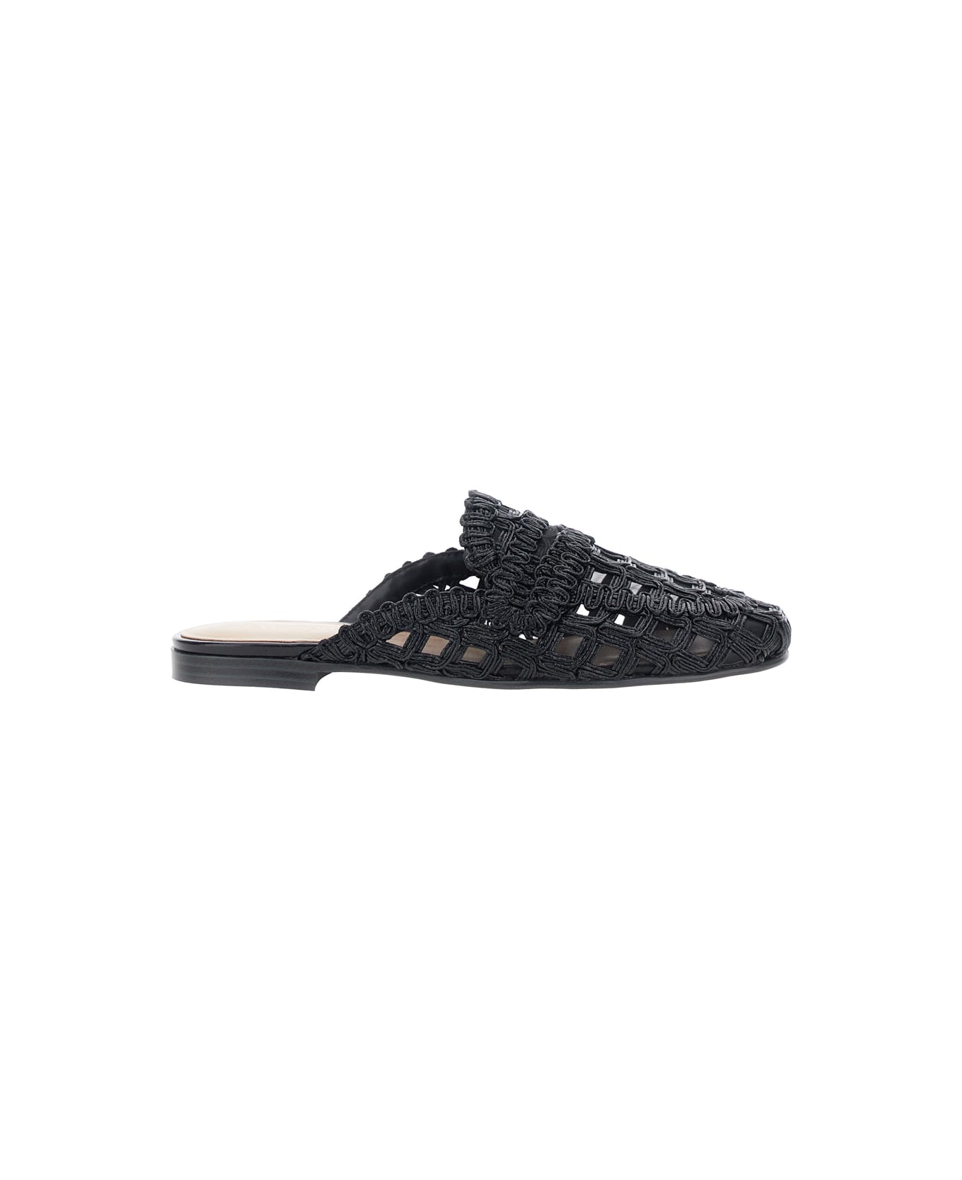 Black mule with fabric upper. The sole is made of rubber. In fabric. For women.