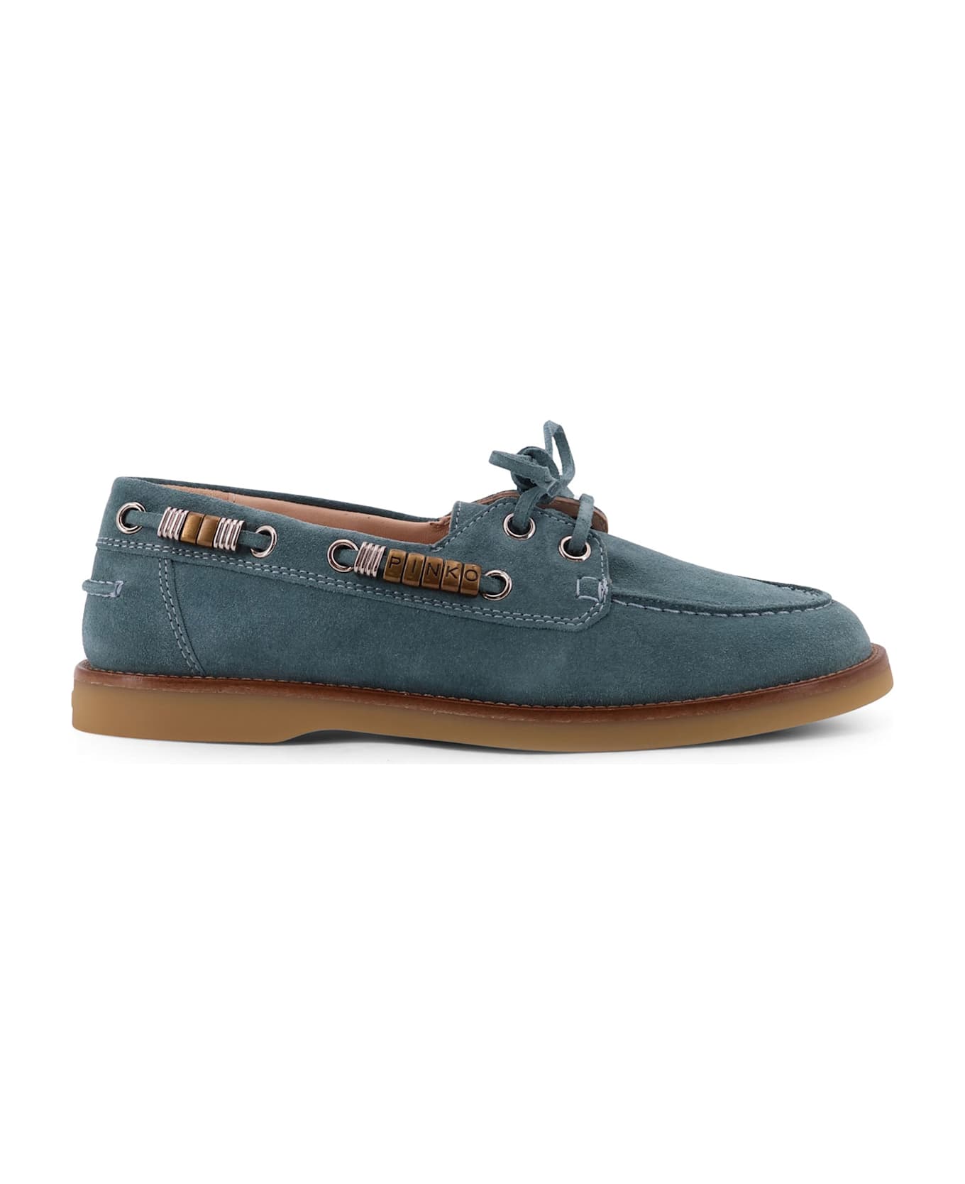 Grace Suede Loafers With Metal Lettering Logo