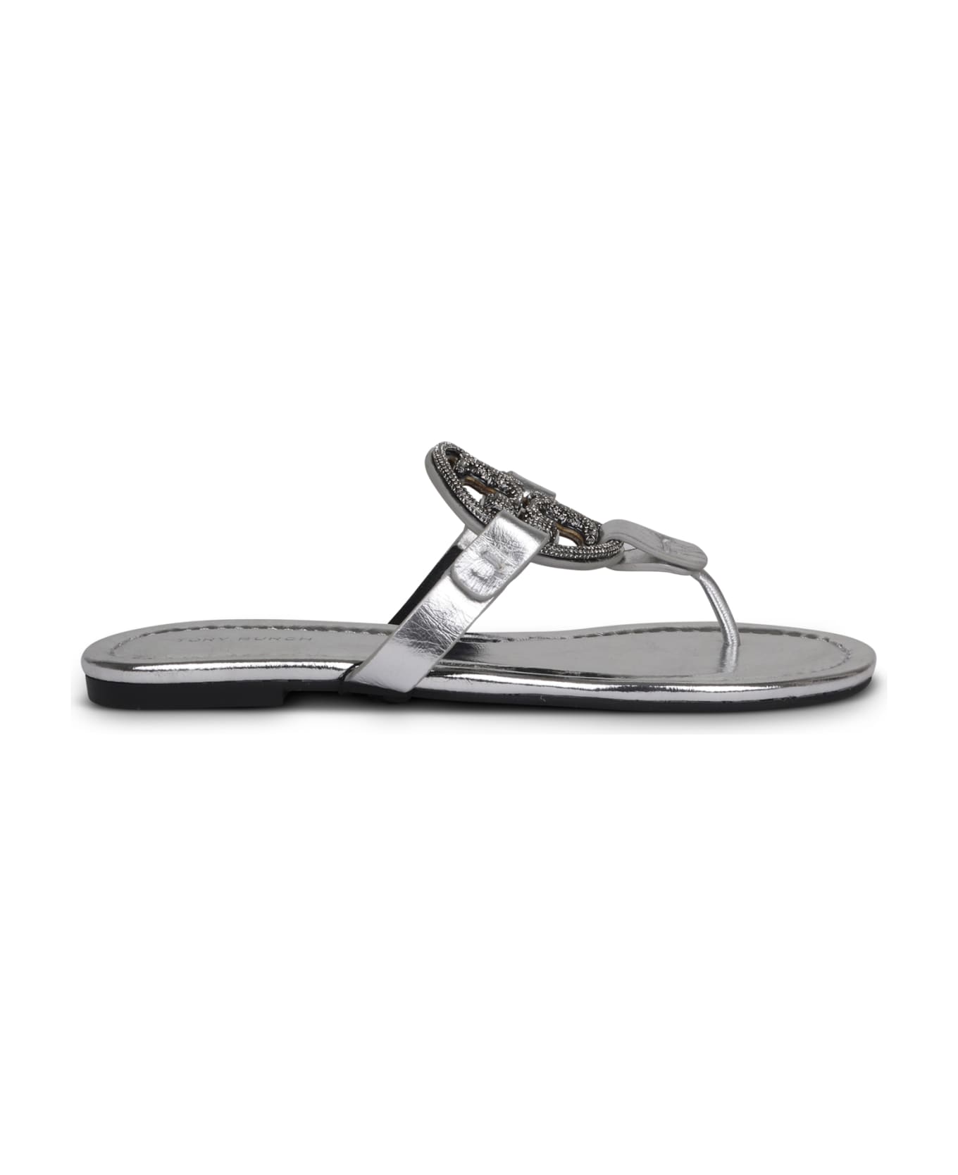 Metallic-effect sandals, monochrome design, signature Double T logo motif, open toe, slip-on design, flat rubber sole, by Tory Burch