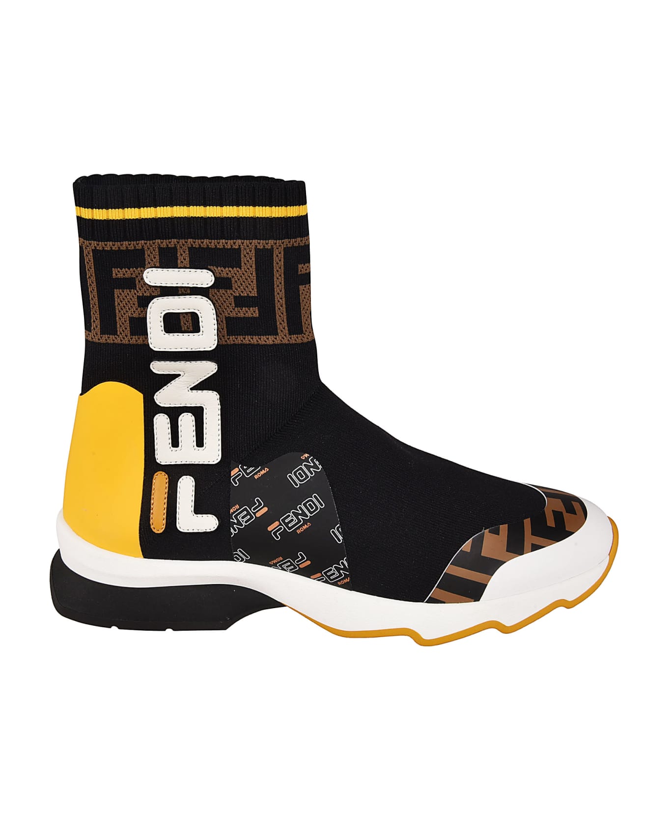 Fila X Fendi Logo Sock Sneakers from Fendi: Black/Multicolor Fila X Fendi Logo Sock Sneakers with rubber sole, round toe, ribbed top, side logo detail and branded insole, Composition: 87% Polyamide, 13% Spandex/Elastane