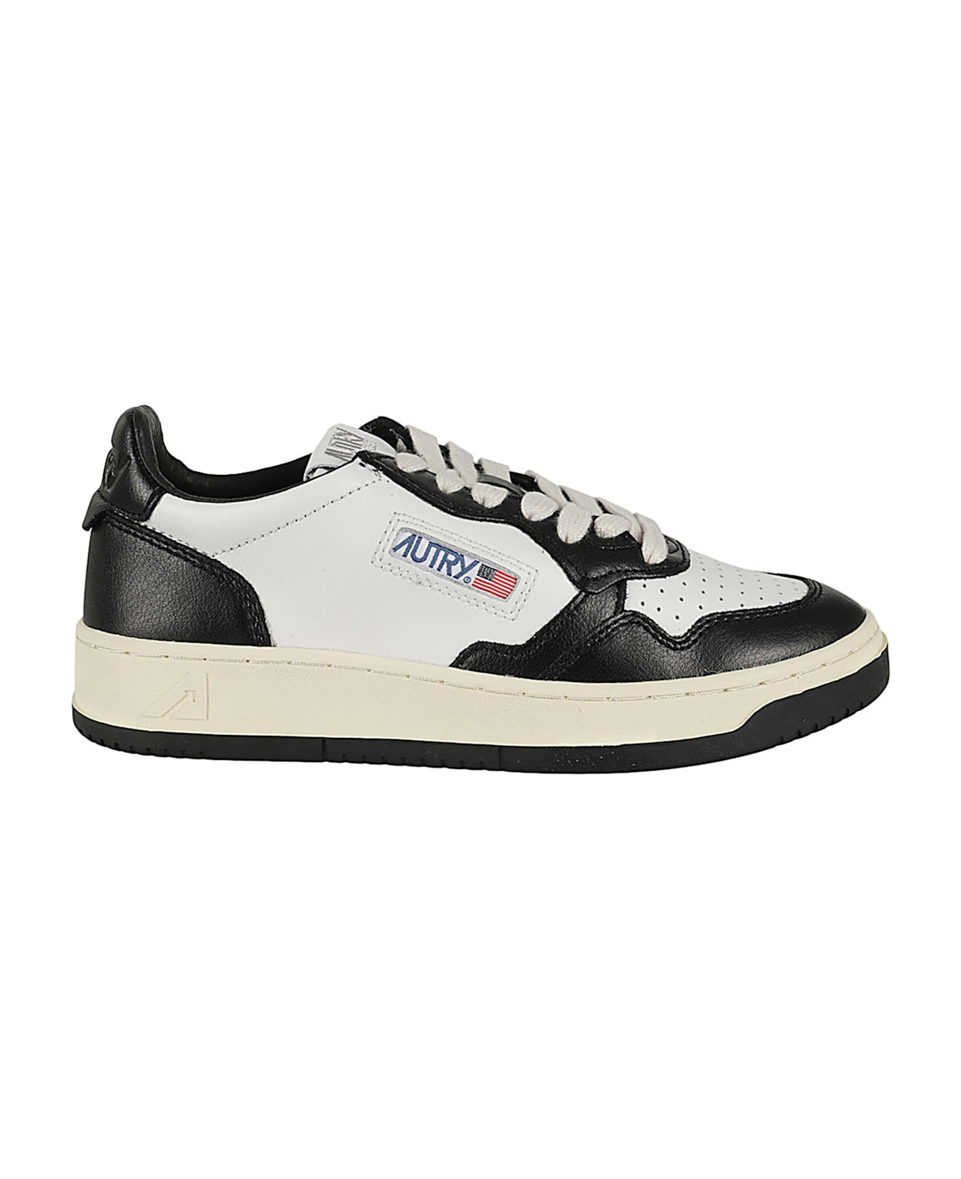 Medalist Low Woman sneaker - Autry - black and white color - leather upper - rubber sole - round toe - cotton laces - side logo
