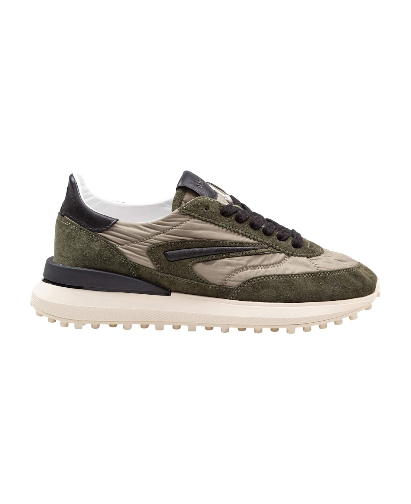 Nylon and suede running sneakers green d. a. t. e. lettering on the tongue cotton laces embroidered square logo on the black leather heel tab black embossed side detail leather and cotton terry lining 2. 5 cm raised insole for greater comfort 2 - 3. 5 cm rubber sole all selected materials are made in italy. regular fit composition: leather and nylon made in vietnam