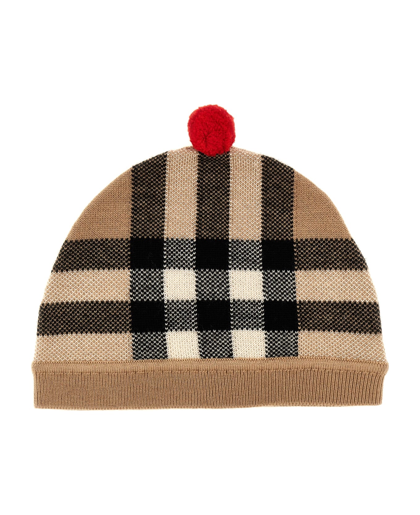 'Camillo' wool and cachemire blend beanie with check pattern and contrast pom pom detail. Composition: 95% wool 5% cashmere