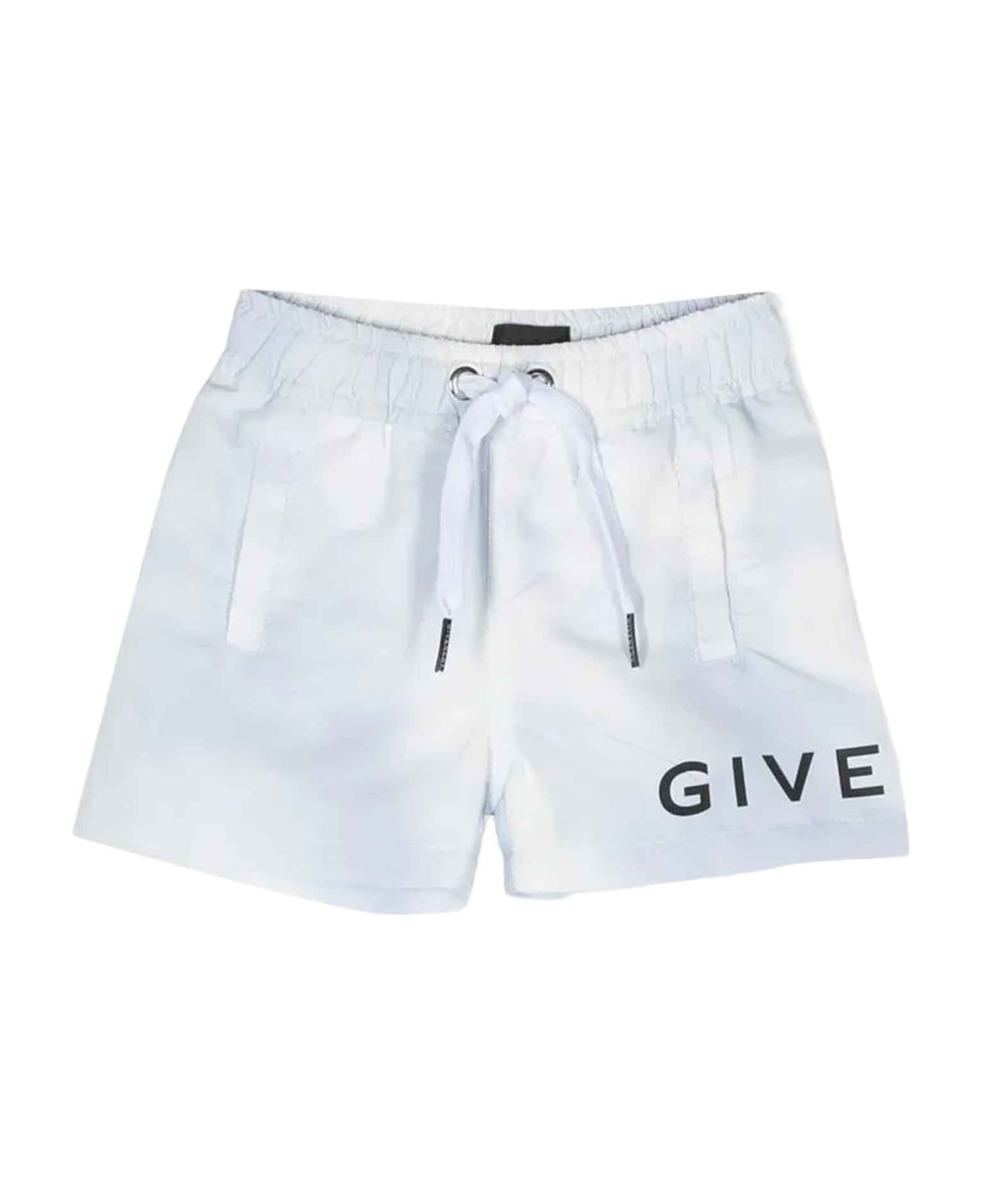 Blue swimsuit baby boy. Side logo print, back logo print, elasticated drawstring waist, two side welt pockets and back welt pocket. 100% polyester