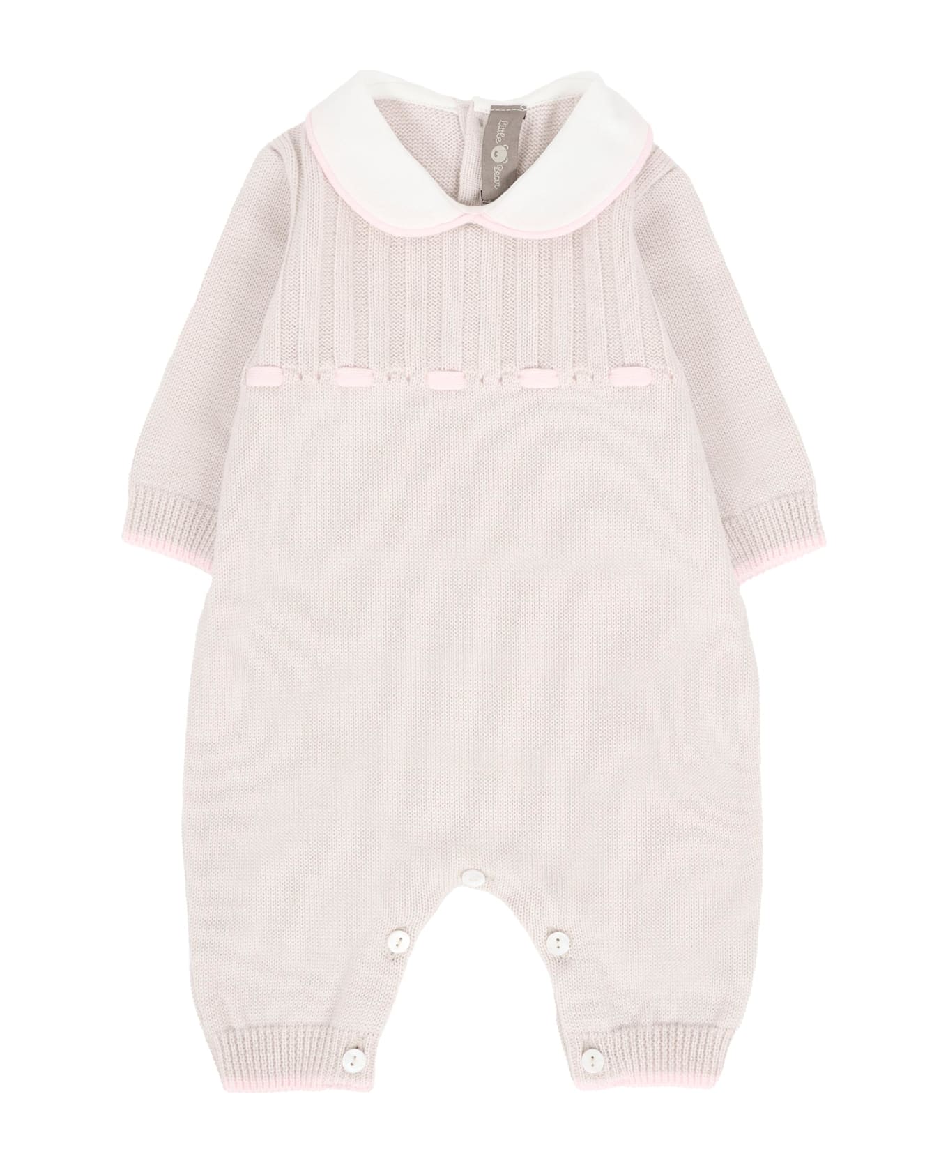 Beige Jumpsuit For Baby Girl With Pink Ribbon