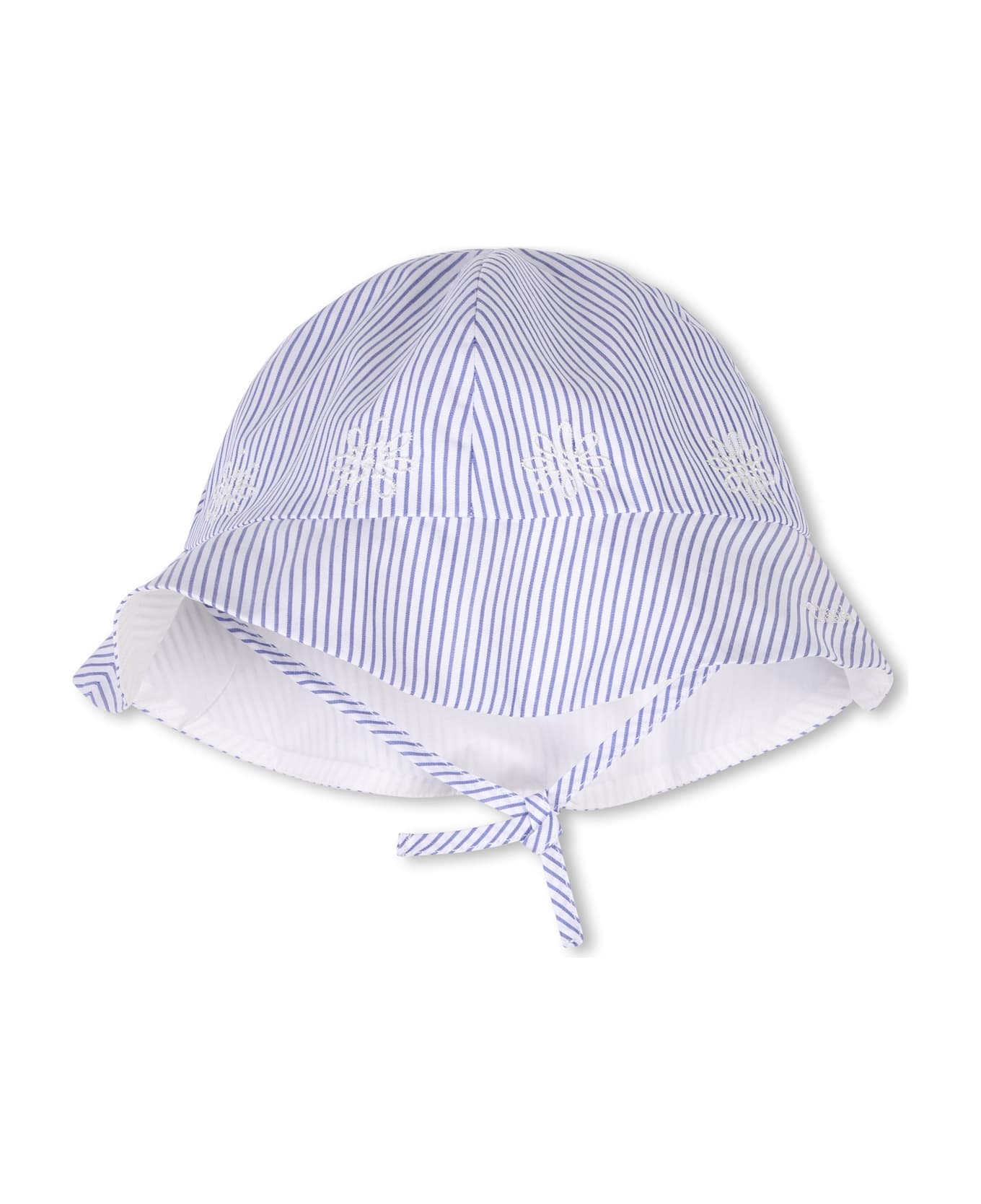 blu/bianco cotone biologico trama popeline motivo gessato ricamo a fiori chiusura con nodo