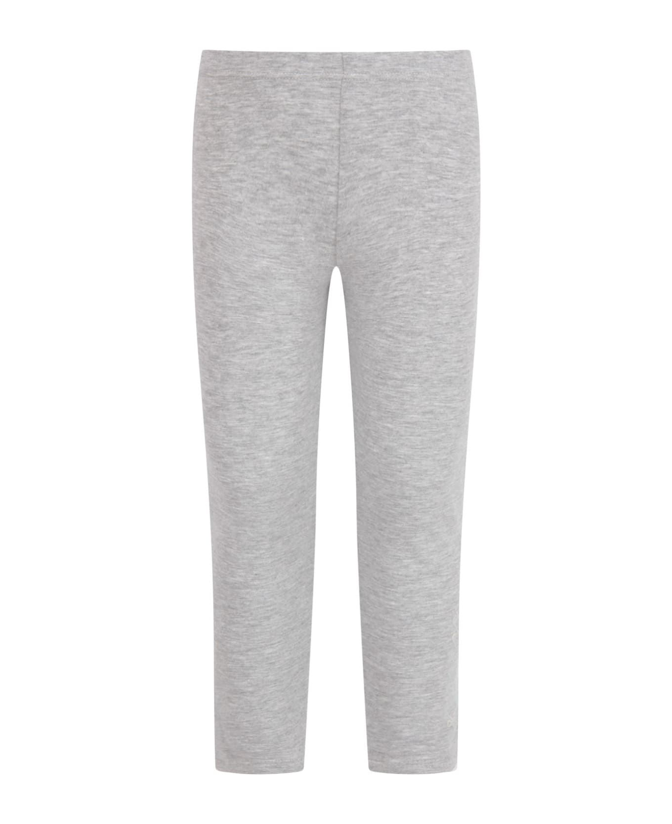 Color: Grey Grey leggings, with elasticized waistband; it is embellished with iridescent logo. 90% Cotton 10% Lycra. Machine wash at 30°C.