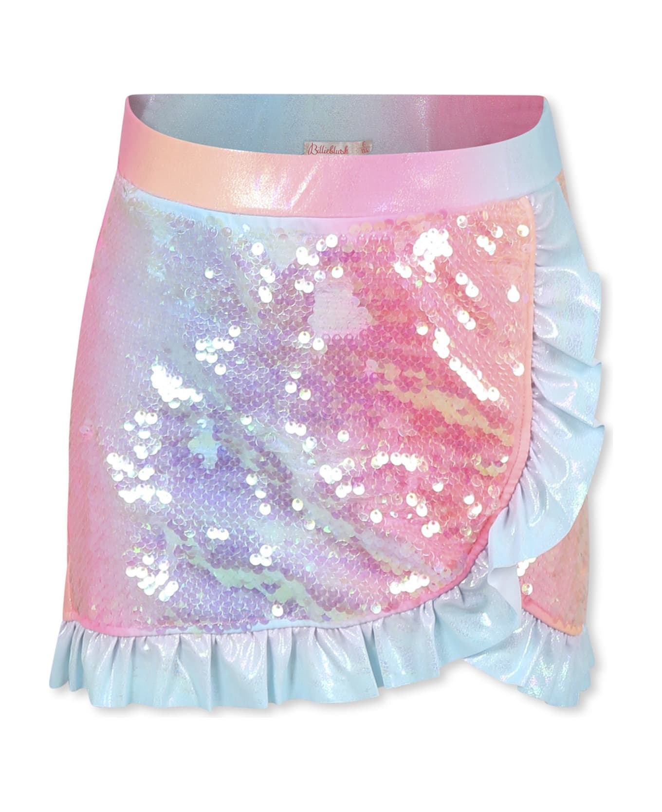 Multicolor cover-up with elastic waist and ruffles. It is embellished with sequins.