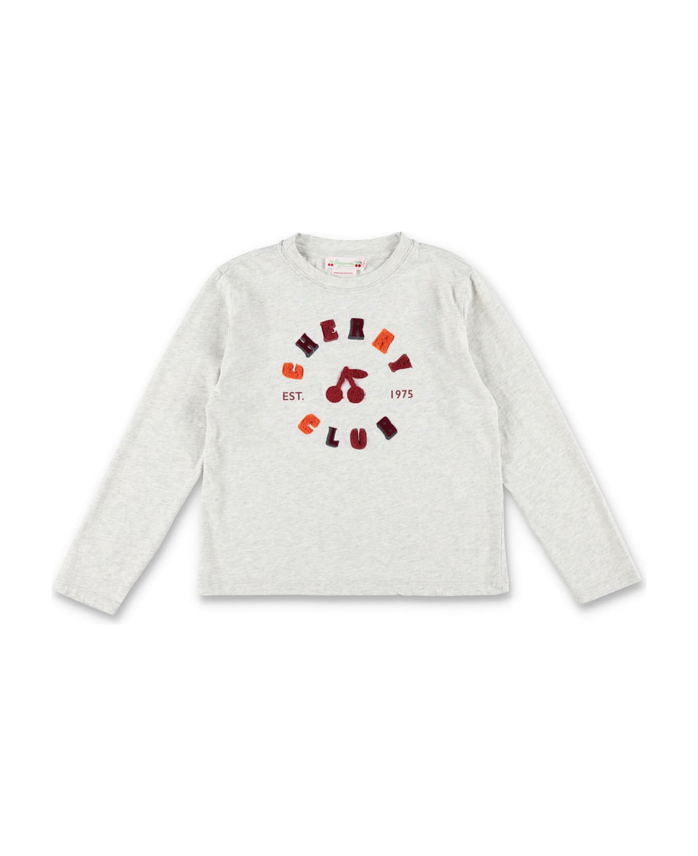 Logo T-shirt By Bonpoint. Featuring: Regular Fit With Soft Cotton Fabric Long Sleeves Round Neckline "cherry Club" Embroidered Logo On Front
