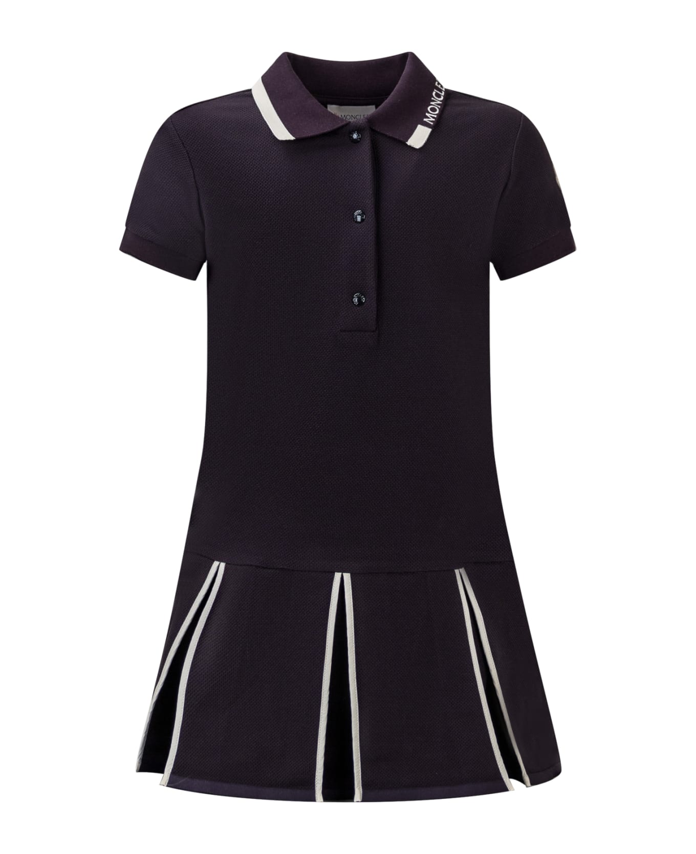 Blue tennis dress. Classic collar. Button closure at front. Pleated skirt. Moncler logo on collar.