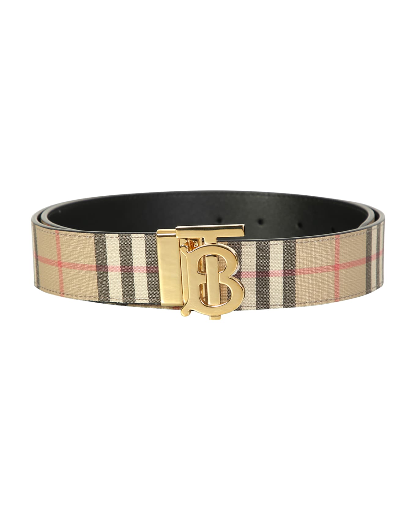 Signature TB monogram plaque. Adjustable fit. Check pattern. Gold details. Color: beige