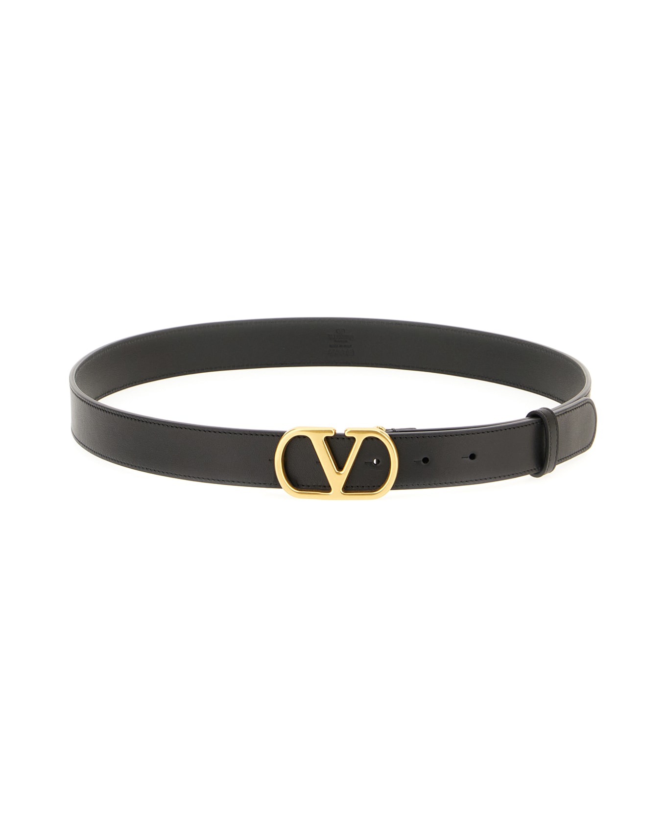 Belt realized in slightly pebble calf leather enriched by metal VLogo detail on the closure. -Snap-fit buckle closure Composition: Exterior: 100% Calf Finishing: Golden metal