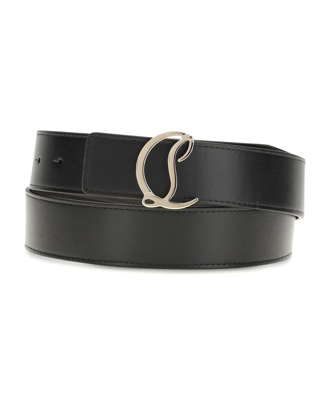 The cl logo belt combines elegance and versatility. made of calfskin leather, it features a silver metal cl logo buckle that discreetly echoes the house's signature. the reversible strap completes the design, offering two styles in one accessory.