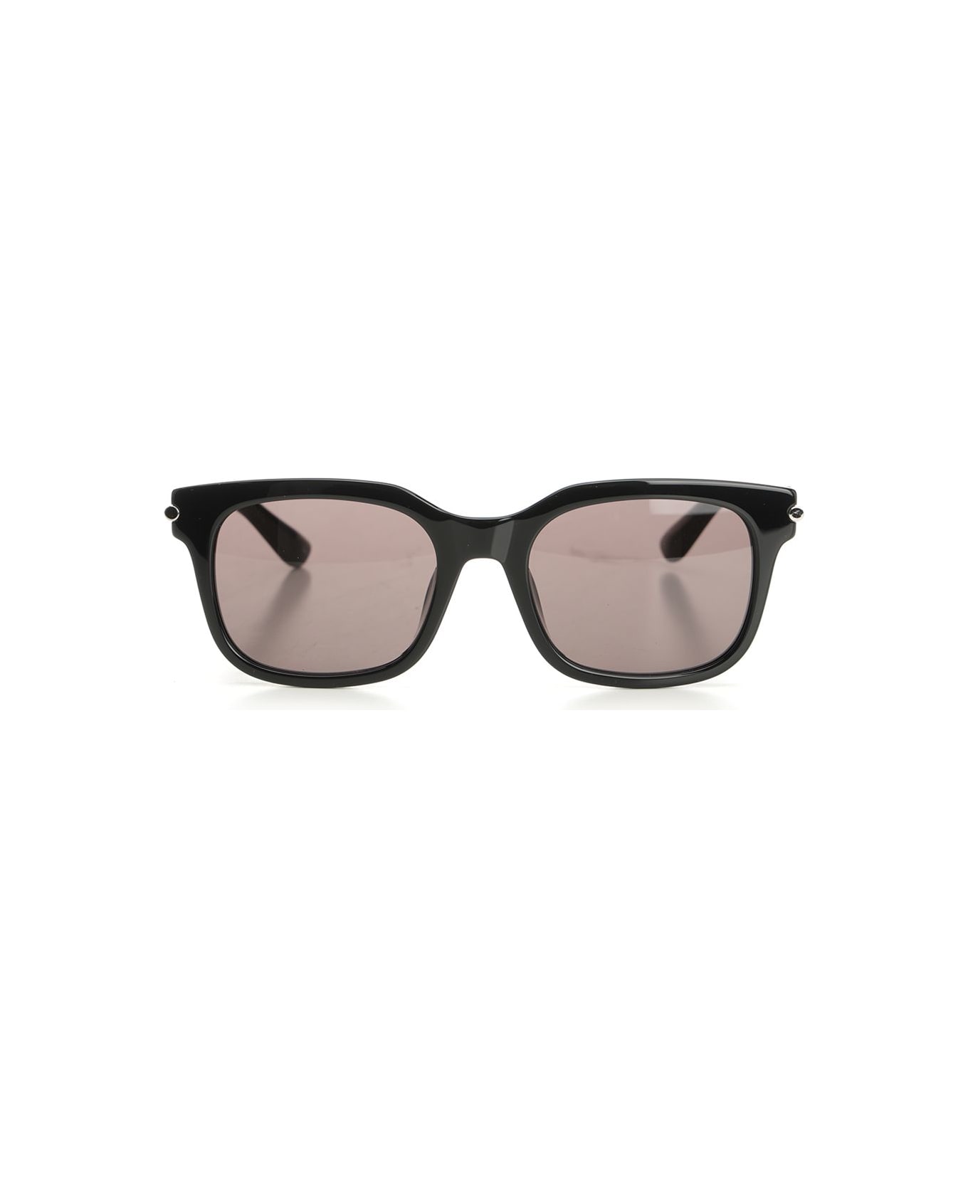 "City" sunglasses with rectangular frame by Alexander McQueen with silver metal T-bar detail on the temples with laser engraved McQueen logo. Composition: