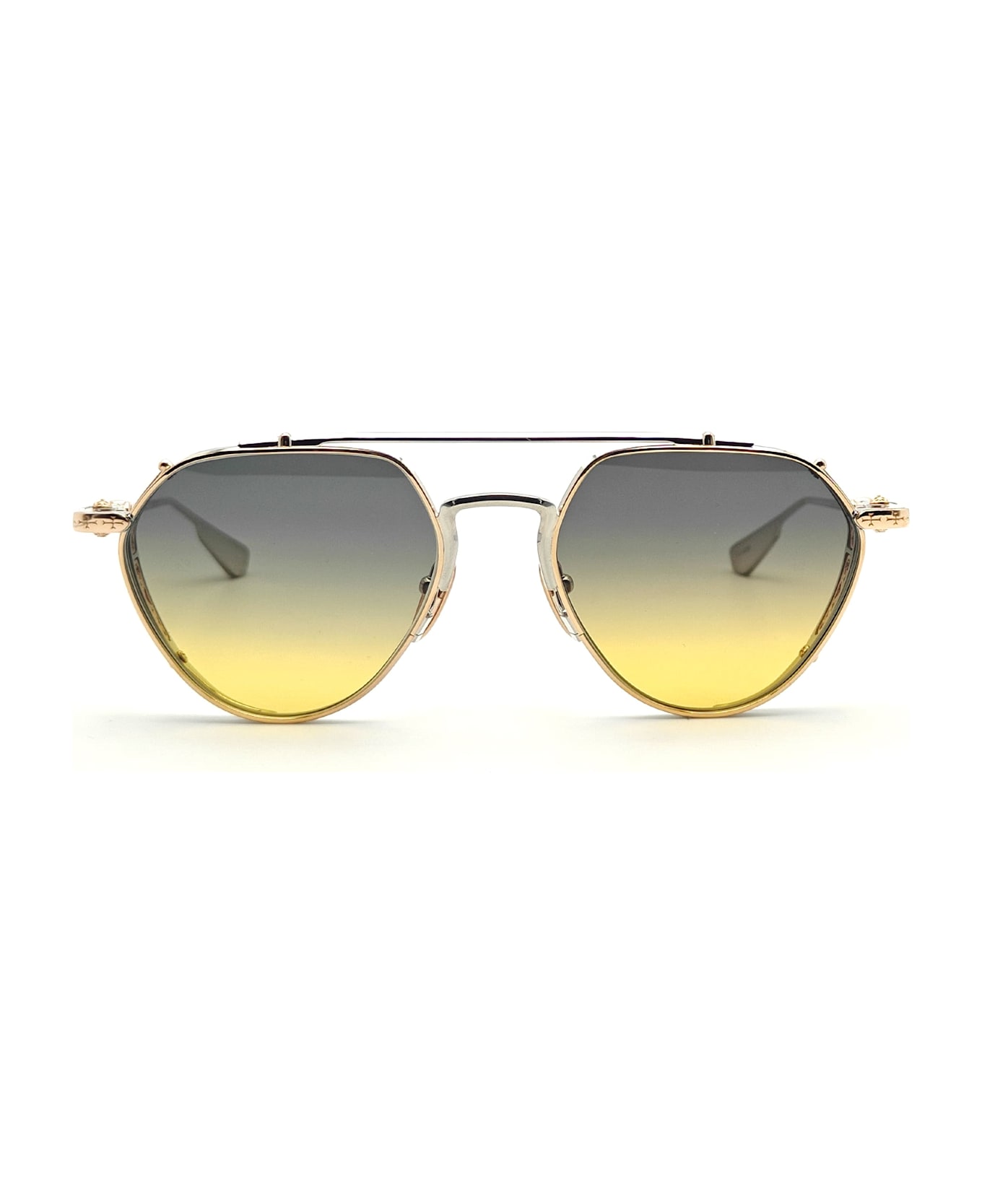Brand: Chrome Hearts Model: Free Ride - Shiny Silver SKU: 324207634955E54107 Type: Sunglasses Color: Silver Material: Titanium Lens color: Gradient Grey Size: 54mm-19mm-149mm Made in Japan