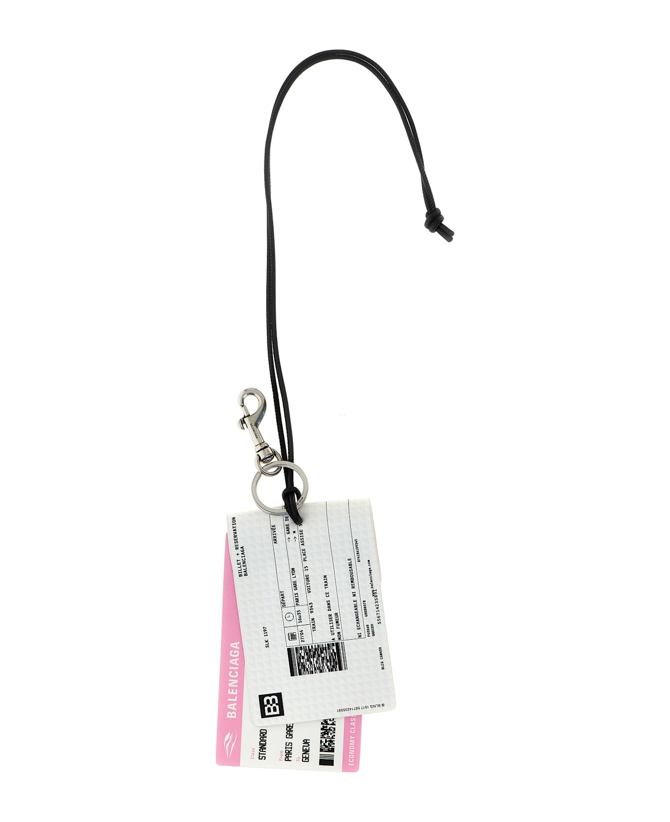 'Train Ticket' cellulose, lambskin and polyurethane keyring with leather ring, carabiner and cord. Composition: 60% polyurethane 40% cellulose