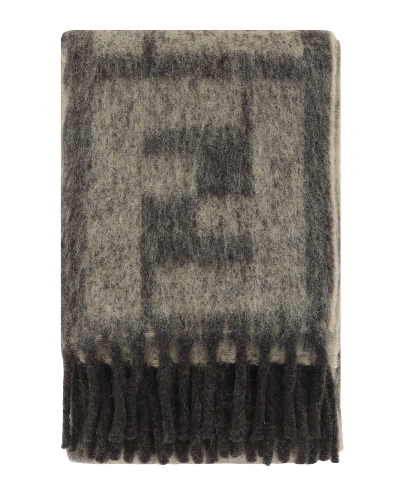 Wool ff scarf by fendi, frayed hem, iconic brand logo applied all-over.
