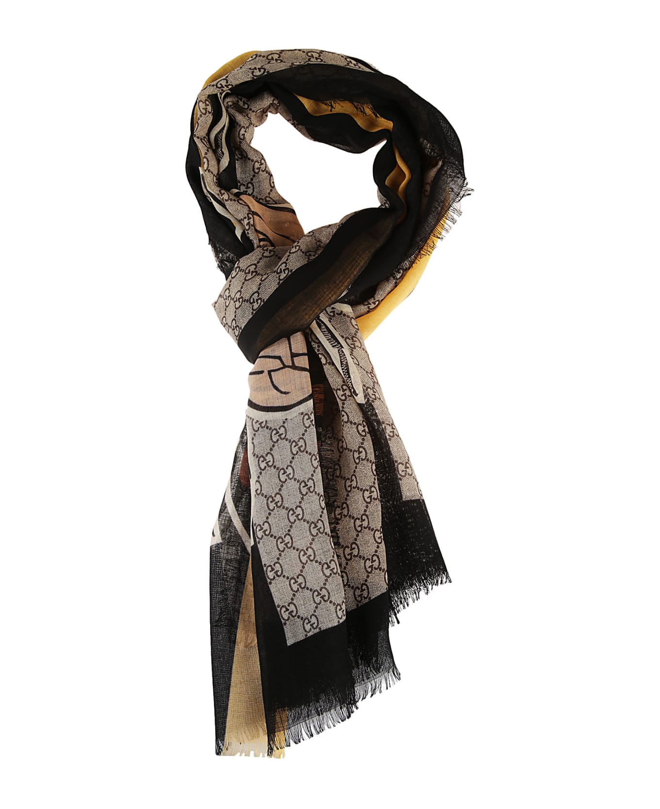 Bee Web Print Scarf from Gucci: Black Bee Web Print Scarf with web detail, GG pattern and fringed edges Composition: 100% Wool