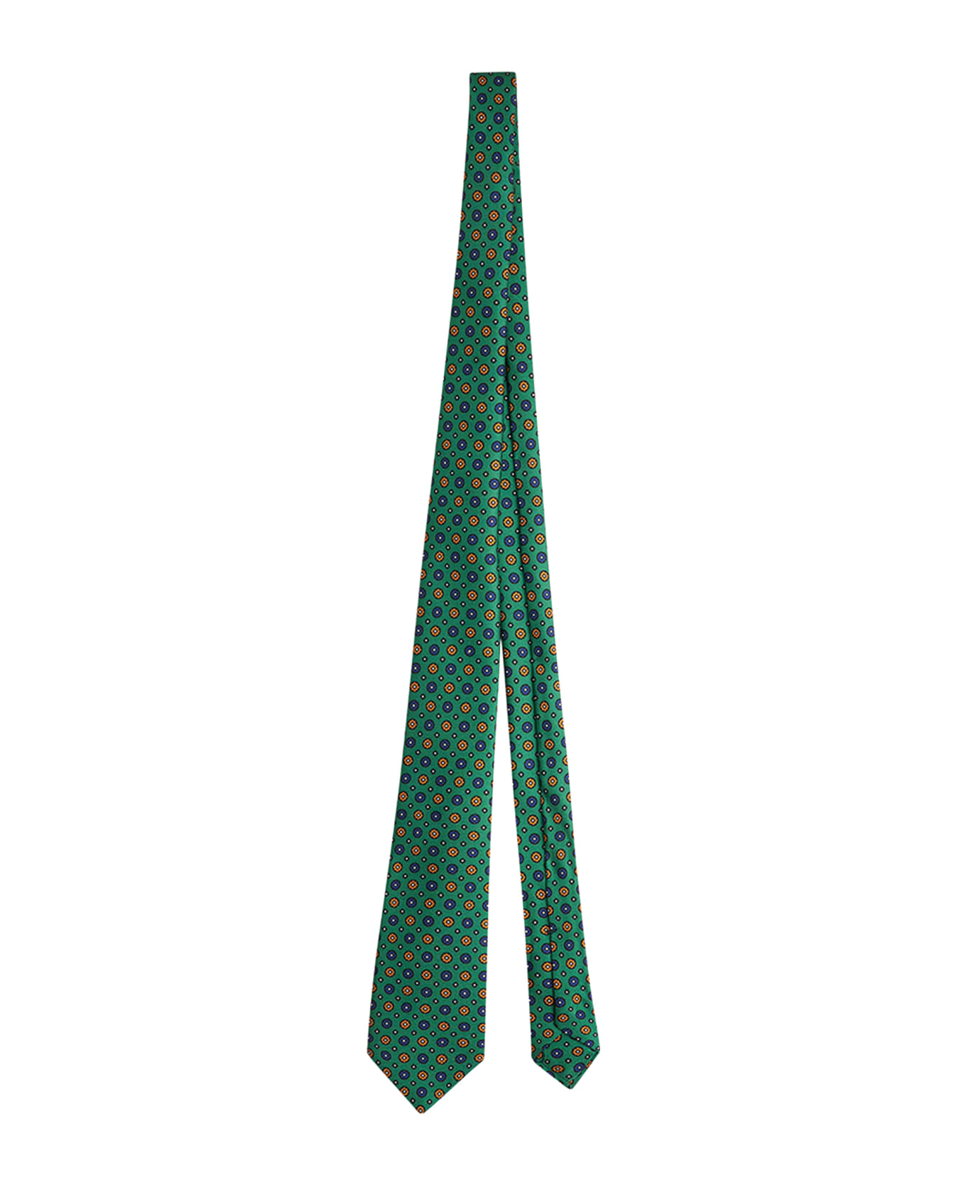 This silk tie features a green, yellow and blue floral design. This Kiton tie has been handmade using the ''seven fold'' technique, drawing upon an ancient tradition of Neapolitan tie-makers. This technique takes its name from the way the tie is constructed: it is made from a panel of silk that is folded diagonally seven times, from the sides inwards, without any cuts or linings being added, and all steps are carried out by hand. Length: 1. 48 m - Width: 8. 5 cm. To keep your Kiton tie looking flawless, we recommend that you store it flat and untied, and prevent it coming into contact with water and chemicals. We recommend professional laundering and pressing.