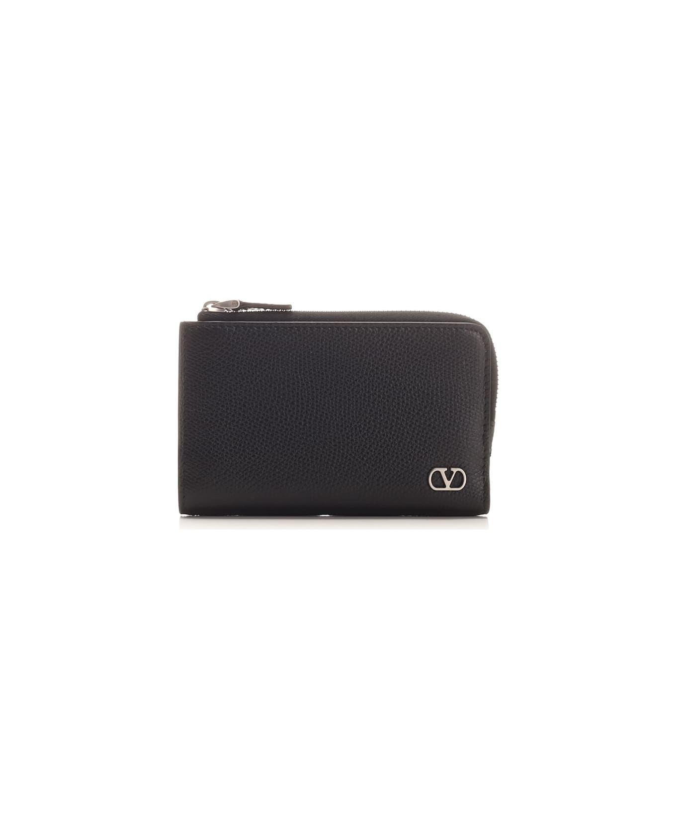 Black calfskin wallet with zip and snap button Composition: 100% leather