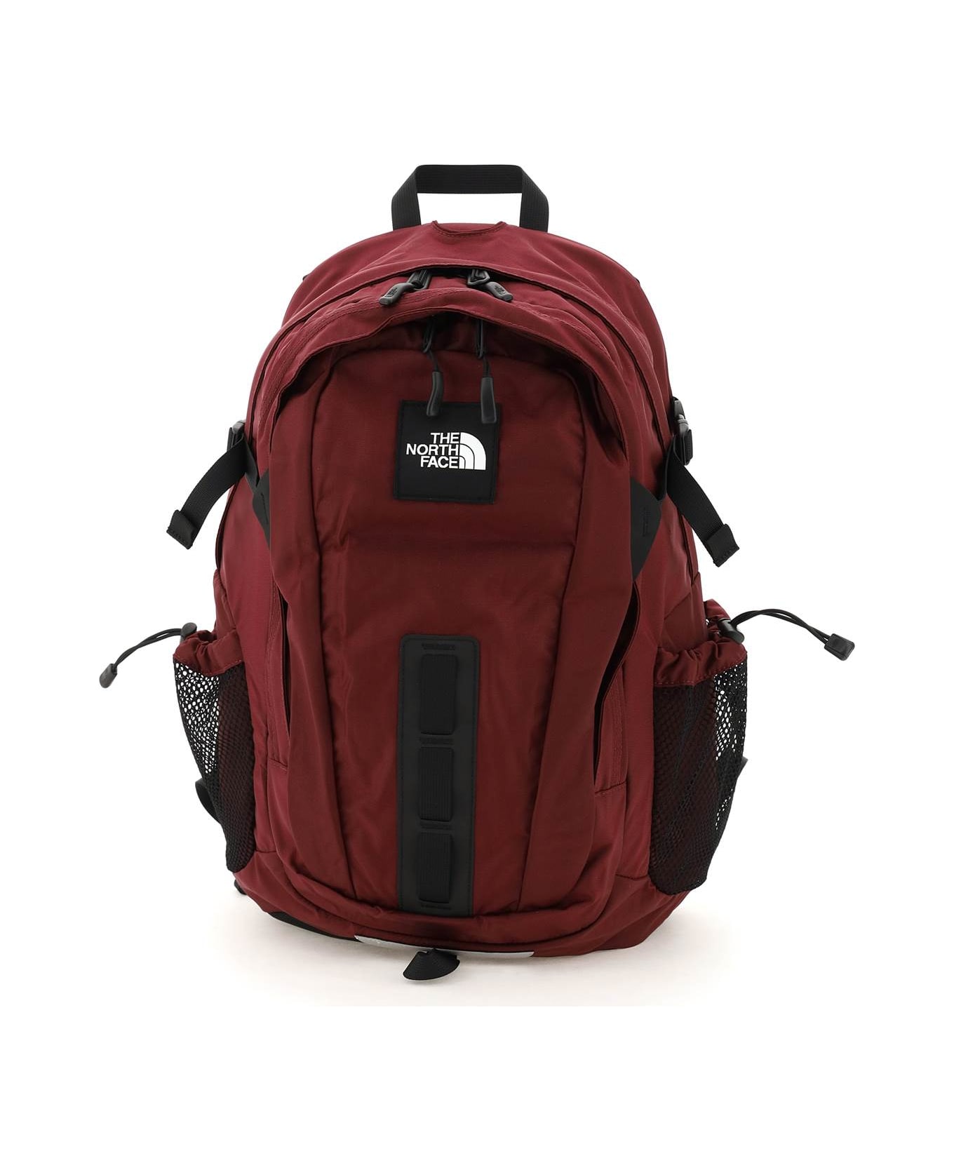 Hot Shot - Special Edition backpack by The North Face crafted in water-repellent nylon with two zipped compartments, two side mesh bottle pockets with elastic drawstring and side adjustable straps. The main compartment features an inner laptop compartment in pile, while the front compartment features a flat compartment with velcro closure, a zipped flat pocket, a phone pocket and various small pockets. Gros-grain top handle, padded mesh back panels, adjustable webbing hip belt and adjustable shoulder straps with adjustable connection strap. Iconic fabric logo patch applied on front. Nylon lining.