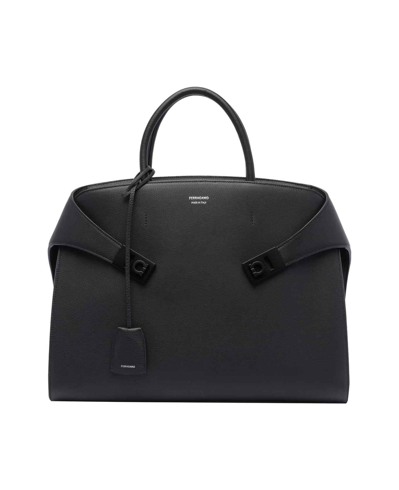 Ferragamo black Hug business bag, zip closure, inner zipped pocket, adaptable and removable strap, frontal mini logo Composition: 100% Calf Leather