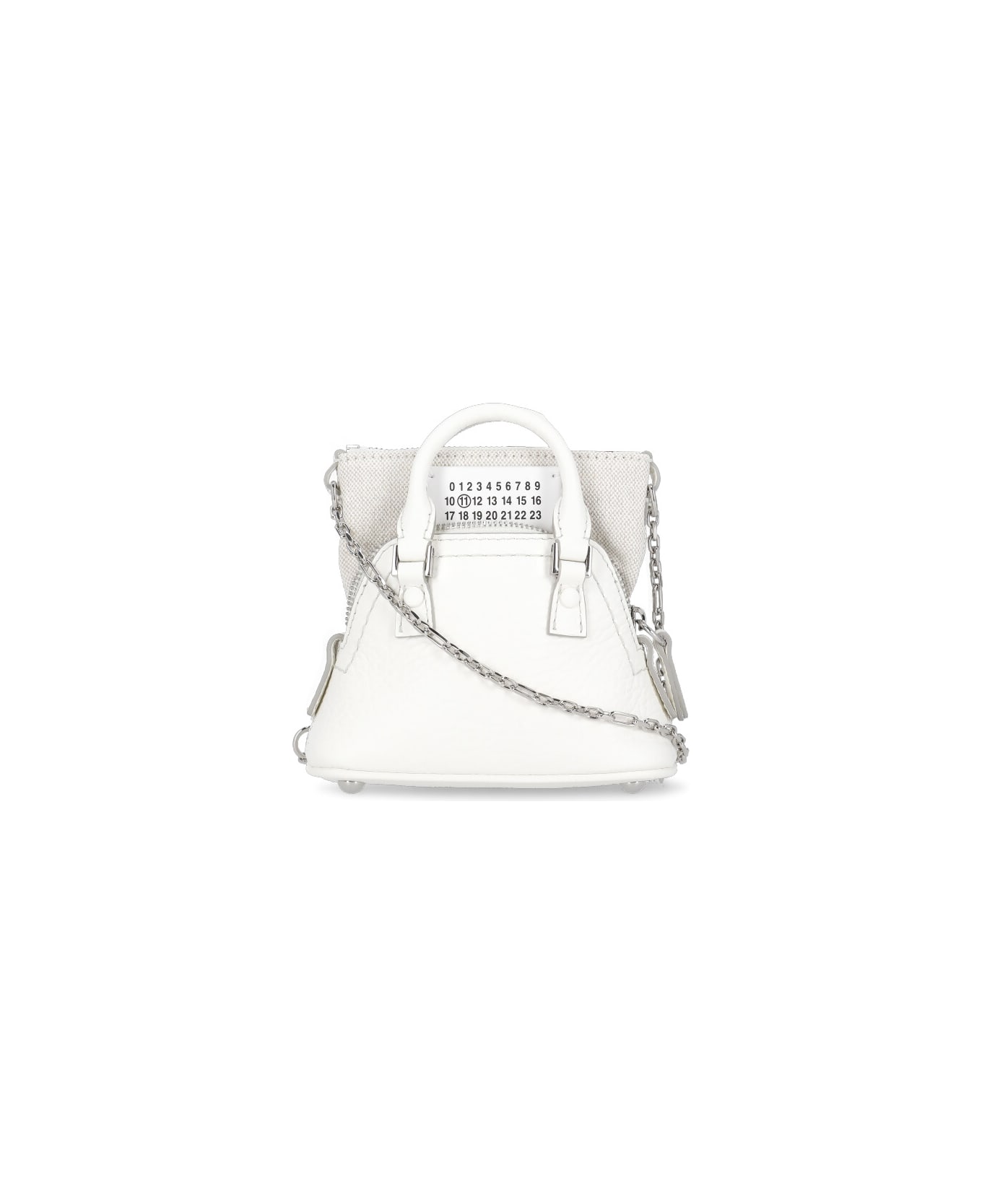 - Beige Maison Margiela pebbled leather hand bag for woman - One metal chain shoulder strap - Front Maison Margiela numeirc tab - One main compartment with zip fastening - Metal studs at hem