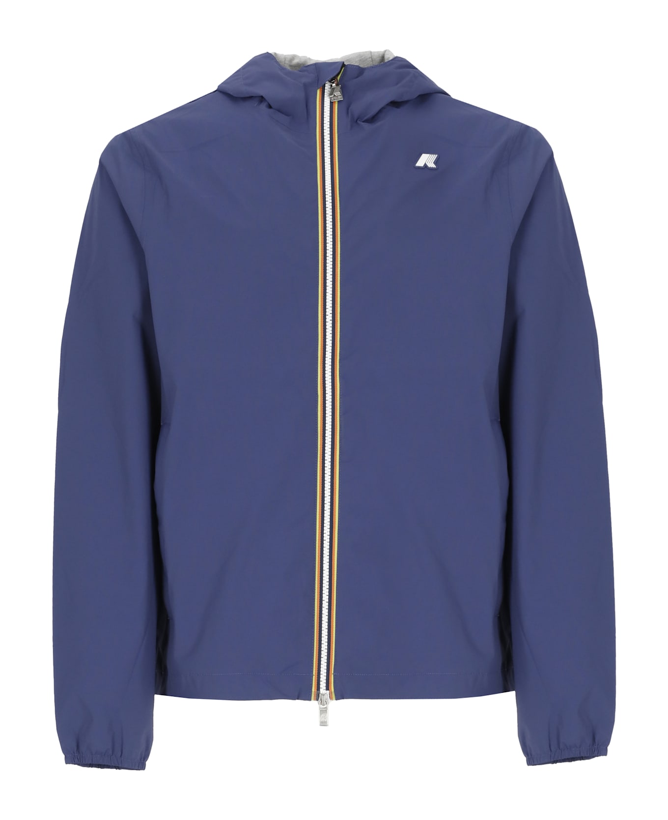- Blue K-Way waterproof jacket for man - Hood - Long sleeves with elastic at hem - Front zip fastening with iconic gros grain detail - Front contrasting colour logo - Two side zip pockets