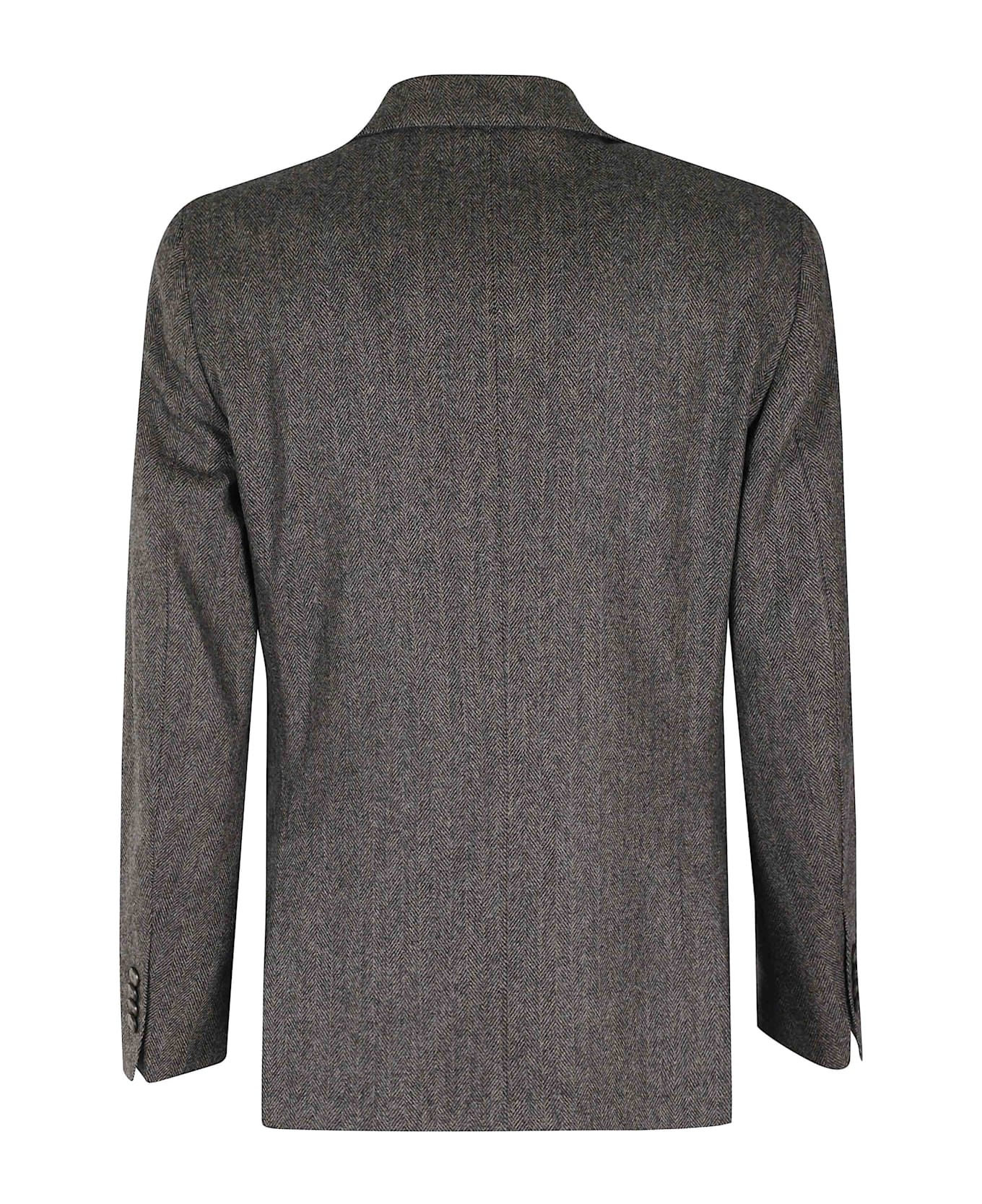 Jacket - Santaniello - Walnut color - Resca wool fabric - Peaked lapel neckline - Long sleeves with buttons at bottom - Patch side pockets - Single breasted two button closure