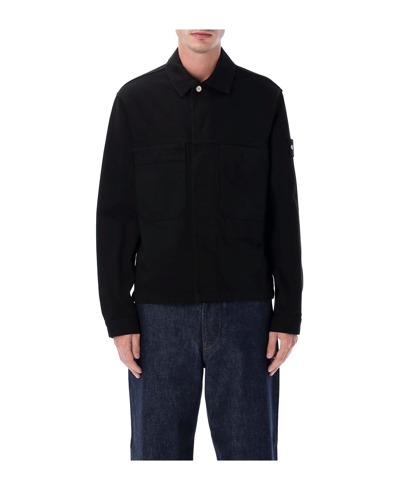 From The Denim Research Collection, The Stone Island Coach Jacket Is Crafted From Polypropylene Denim With A Rinsed Finish, Offering A Soft Touch And Subtly Aged Appearance. Designed With A Front Yoke And Patch Chest Pockets With Concealed Snaps, It Also Features An Internal Standing Pocket And Buttoned Cuffs With A Small Star Embroidery. The Look Is Completed By The Stone Island Denim Research Badge With Metal Buttons On The Left Sleeve. Polypropylene Denim Fabric With Rinsed Finish Front Yoke Construction Patch Chest Pockets With Concealed Snap Closure Internal Vertical Chest Pocket Adjustable Cuffs With Button And Star Embroidery Above Right Placket Hidden Button Fastening Under Double Placket With Visible Collar Button Stone Island Denim Research Badge With Metal Buttons On Left Sleeve Andrea Is 1,90 M And Wears Size L