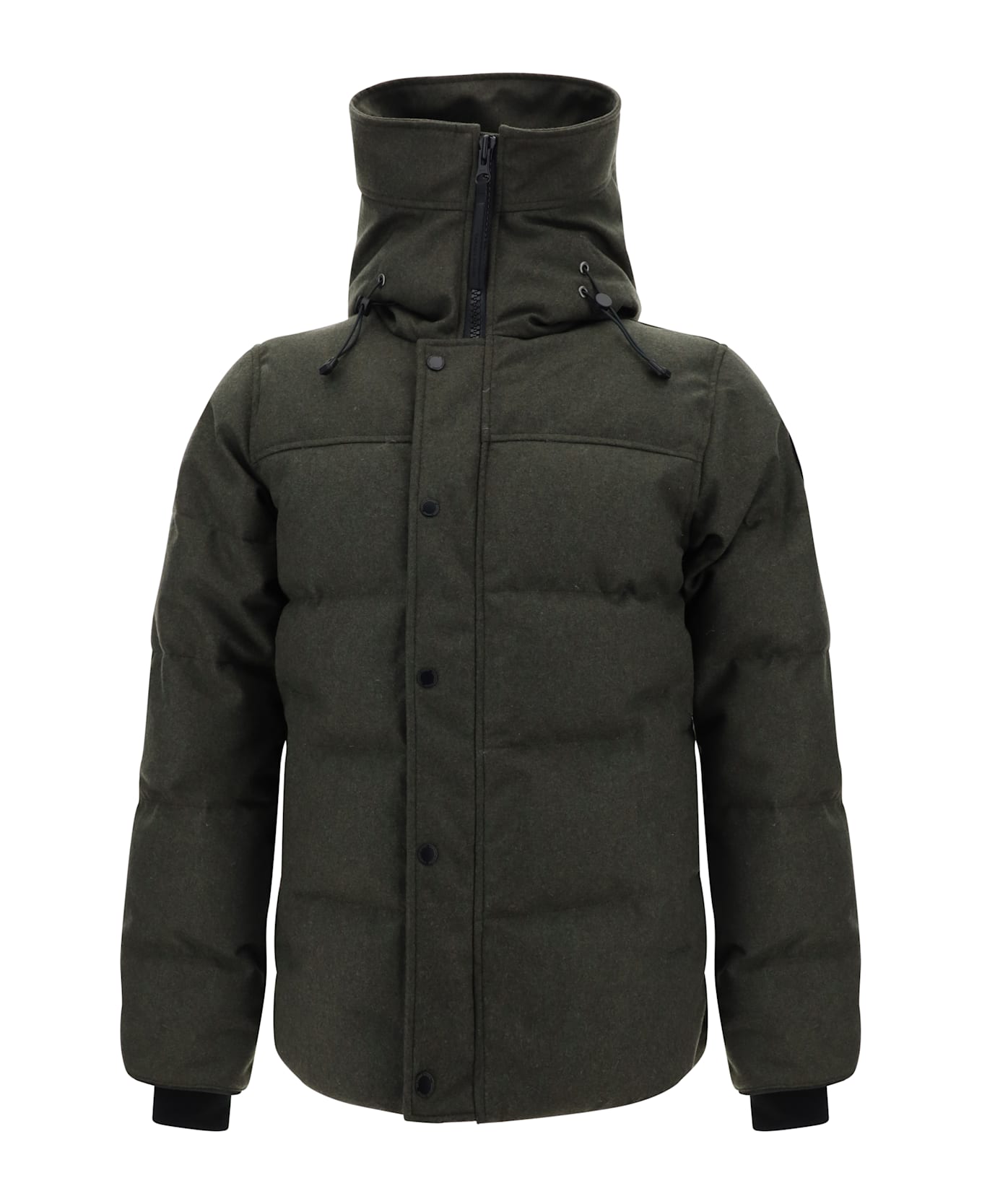 Macmillan down jacket by canada goose, high neck model with hood, two front zipper pockets, front closure with double-slider zipper and snap button flap, iconic brand logo patch on left sleeve. Composition: 100% % Polyamide