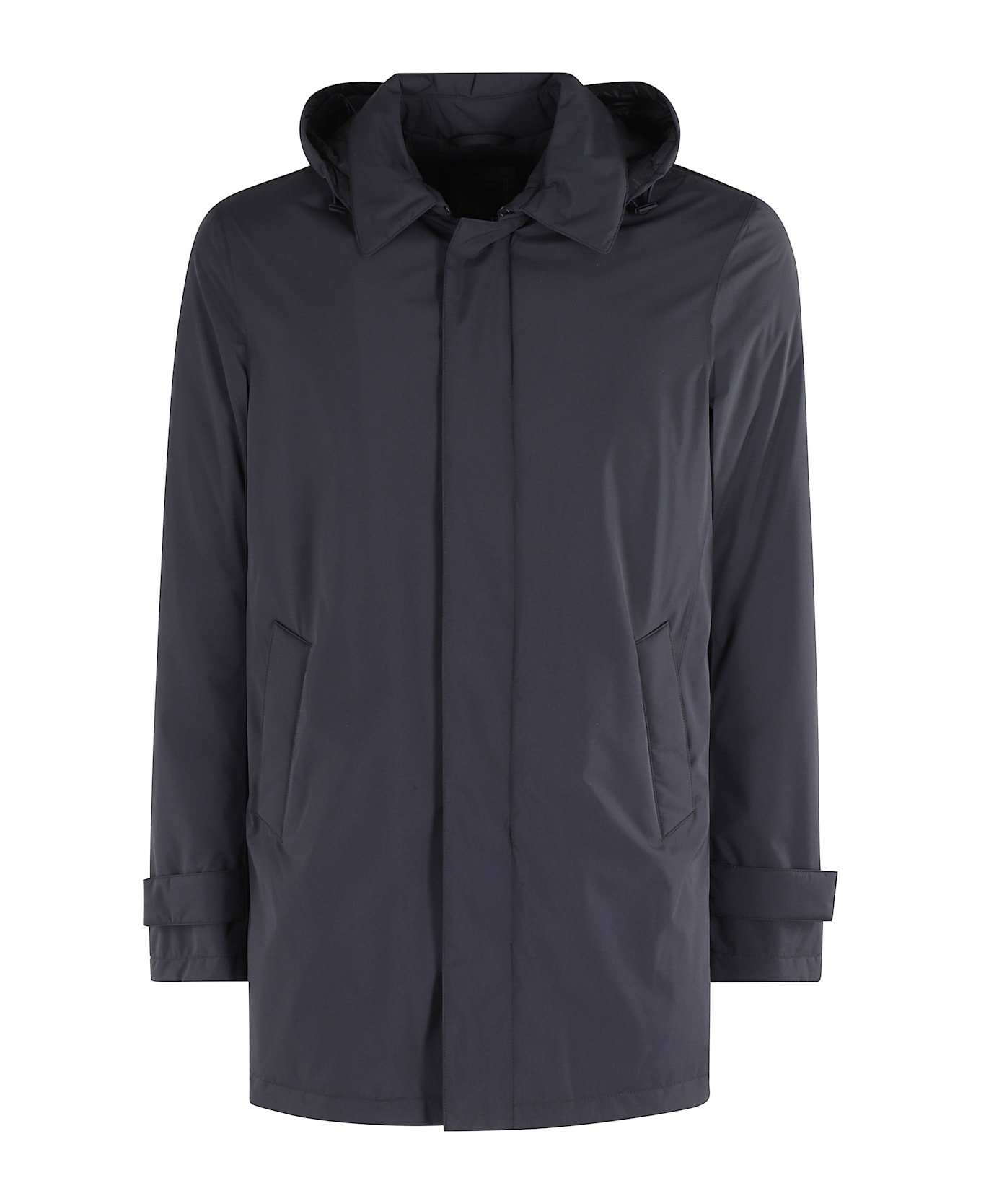 Jacket -Herno -Blue color -Long sleeve -Cap -Central button and zipper closure