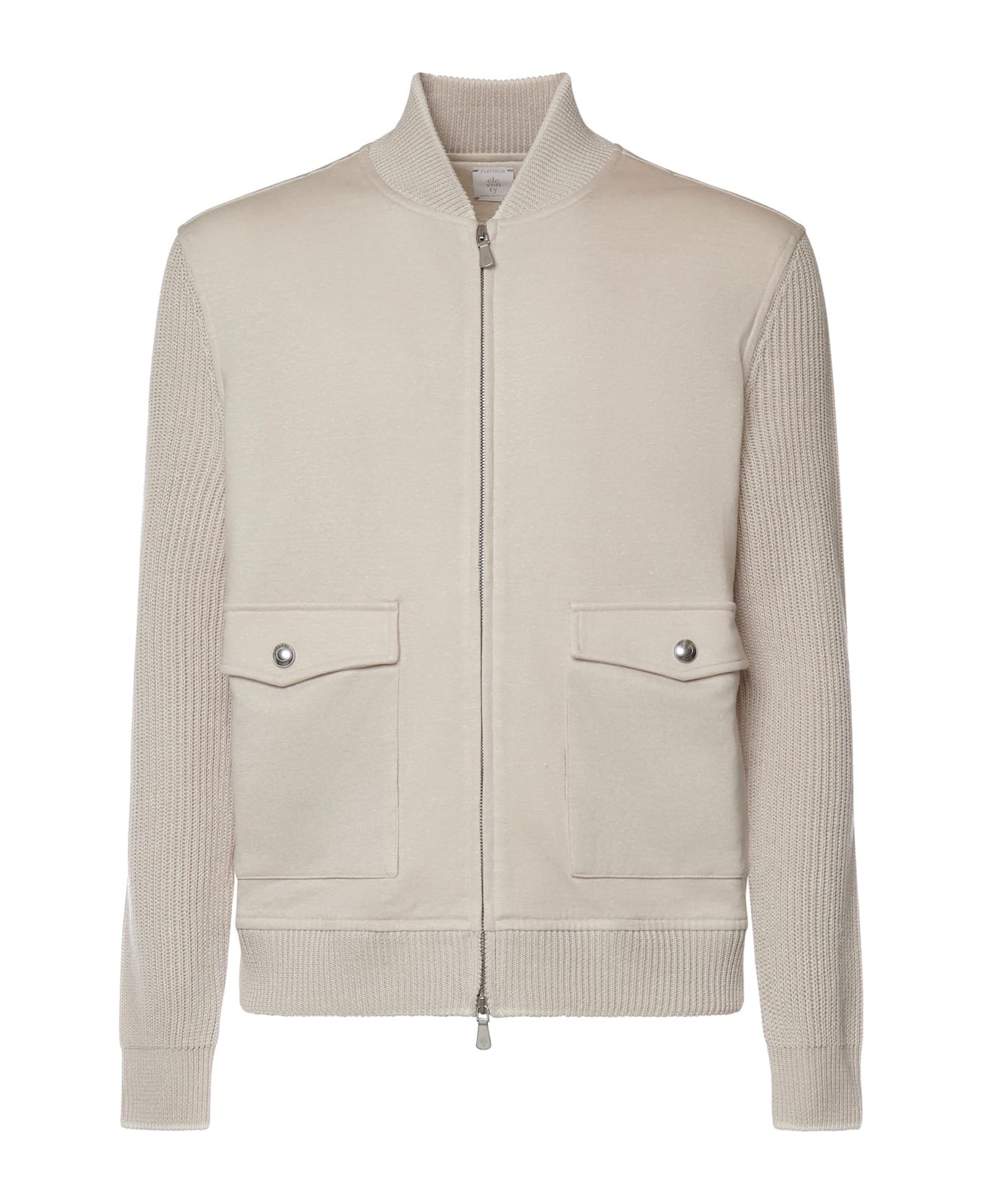 - Front zip closure - Patch pockets - Long sleeves - Ribbed trim - Regular fit - Made in Italy - Size shown is S - Designer color: Sand, White