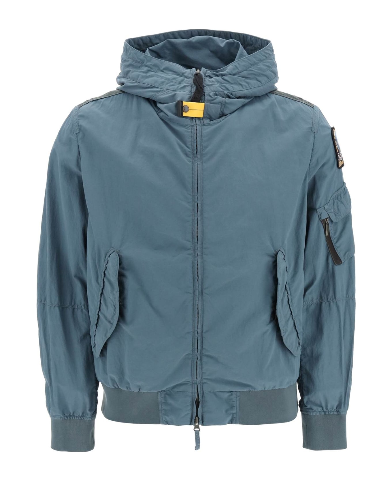 Parajumpers partially mesh lined technical blouson, water-repellent and garment-dyed. It features adjustable drawstring hood, double-slider zipper closure, front studded flap pockets, zipper and button sleeve pocket. Finished with ribbed hems, underarm ventilation, iconic yellow tape neck closure and logo patch on the left sleeve. Regular fit. The model is 187 cm tall and wears a size L.