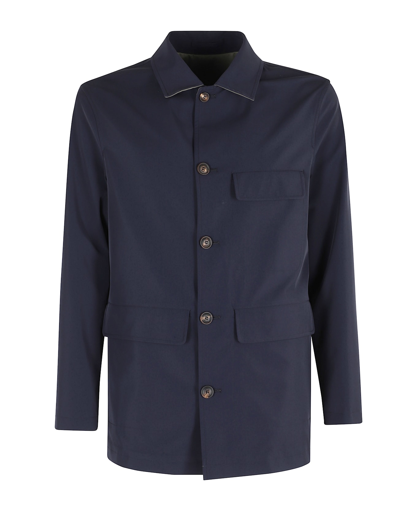 Category: Jacket Item: Reversible Jacket Brand: Kired Color: Midnight blue Collar: Shirt collar Pockets: Patch pockets, Two interior welt pockets Details: Reversible Closure: Front button closure SIZE AND FIT Fit: Regular Sleeve: Long
