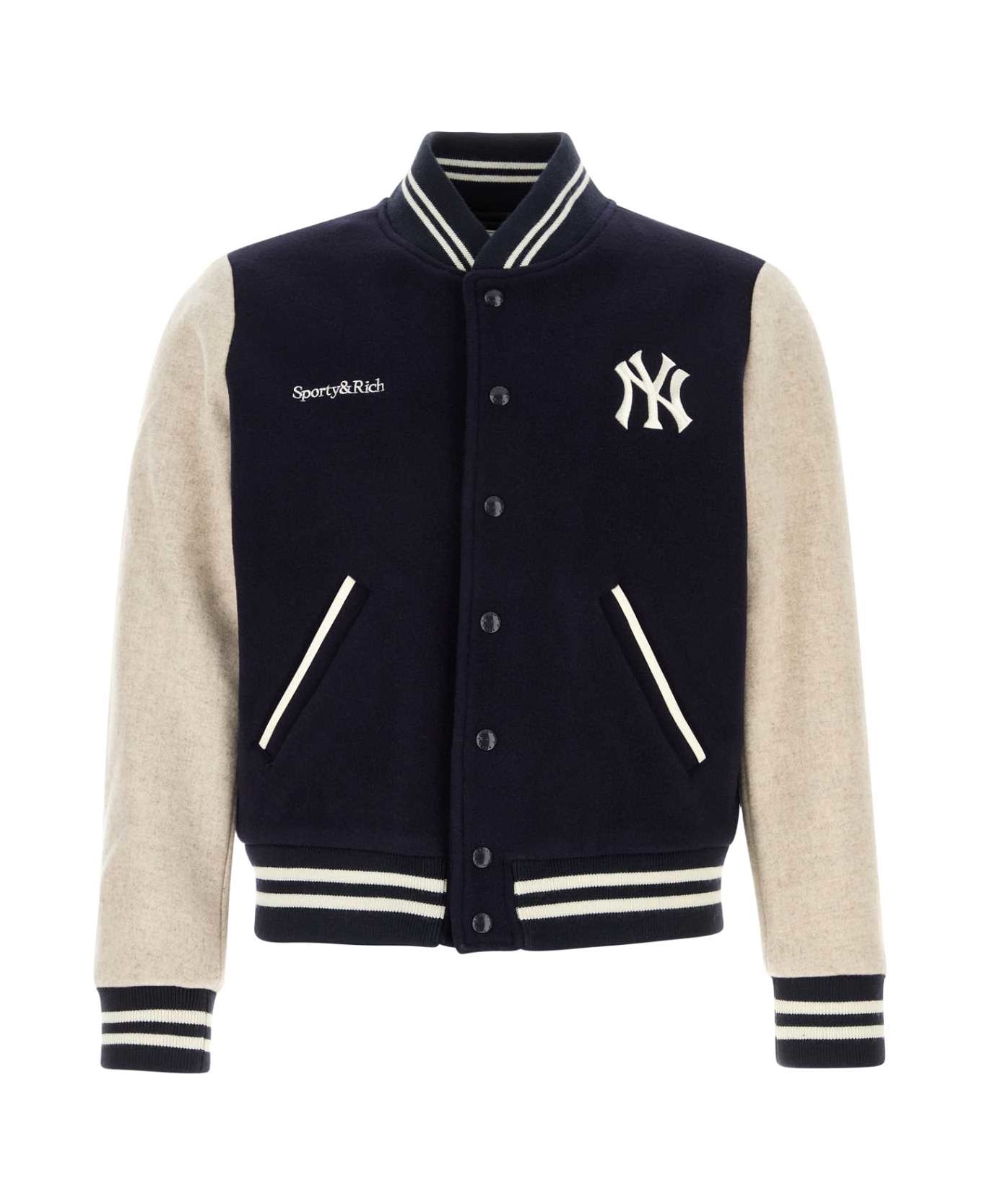Dark Blue Wool Blend Bomber Jacket from Sporty & Rich