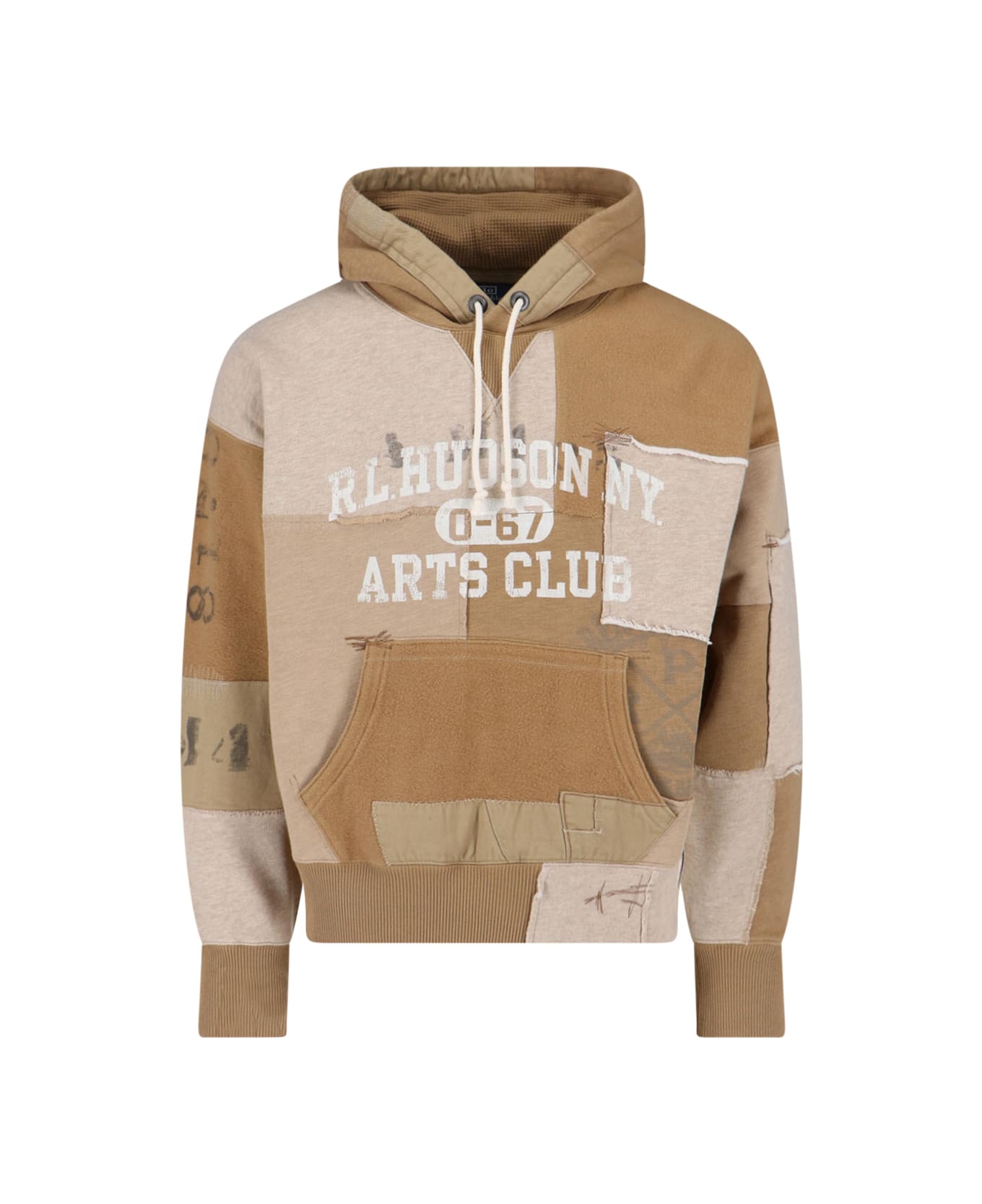 Polo Ralph Lauren Vintage Hoodie in brown cotton with distressed effect, layered patch design, drawstring hood, maxi front pocket, contrast logo print on the front, side logo patch, ribbed trim, straight hem.