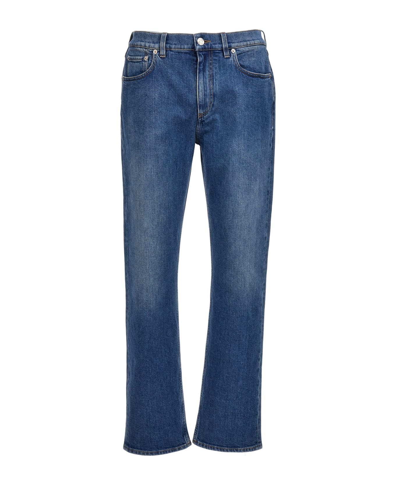 5-pocket stretch denim jeans with straight leg, zip and button closure, a logo detail at the back. Composition: 98% cotton 2% elastane