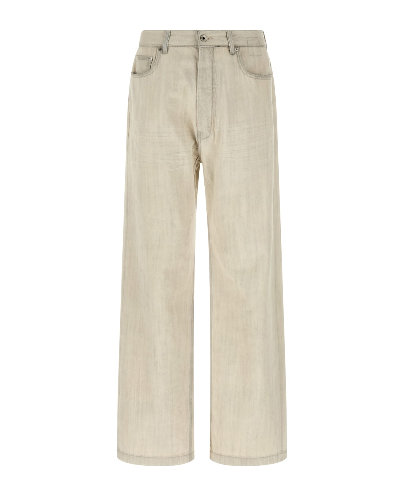 'Geth' Japanese denim jeans with 13oz average weight milk wash, medium waist, extra long wide leg, front button closure, five pockets. Composition: 100% cotton