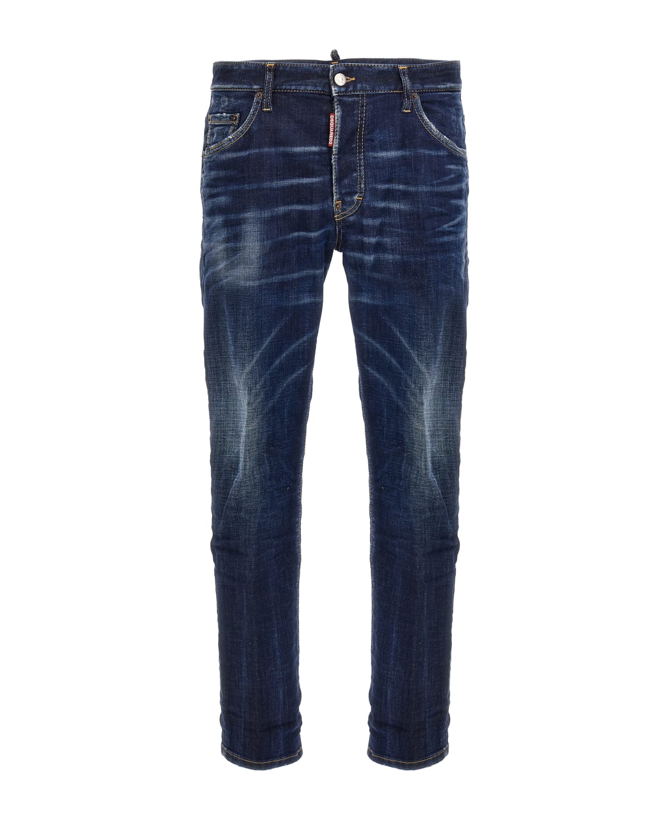 'Skater' cotton denim jeans with used-effect details, button closure, five pockets, leather logo tag.