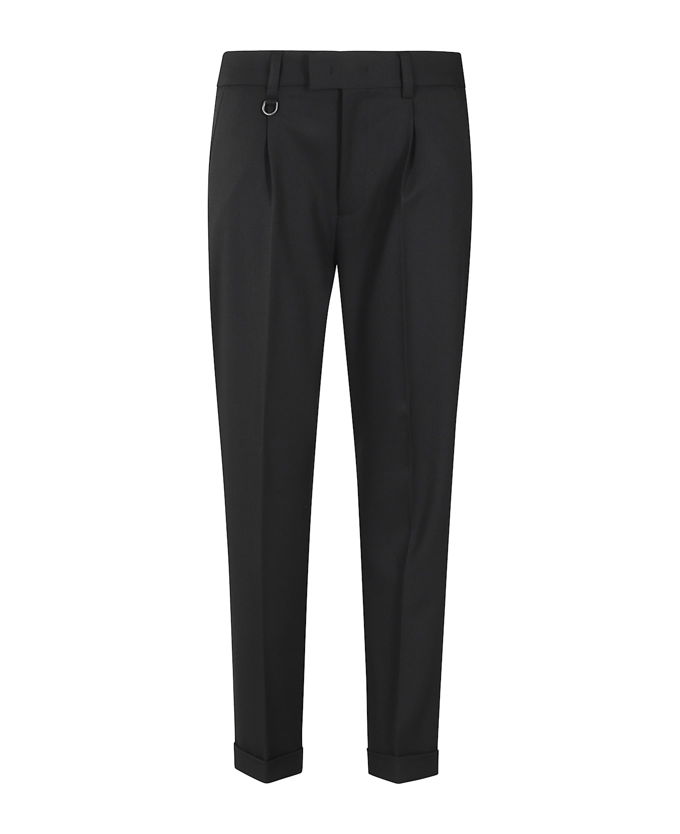 Pants - Paolo Pecora - Black color - Waistband with belt loops - Chino leg with darts - Front hook and zipper closure - Turn-up hem