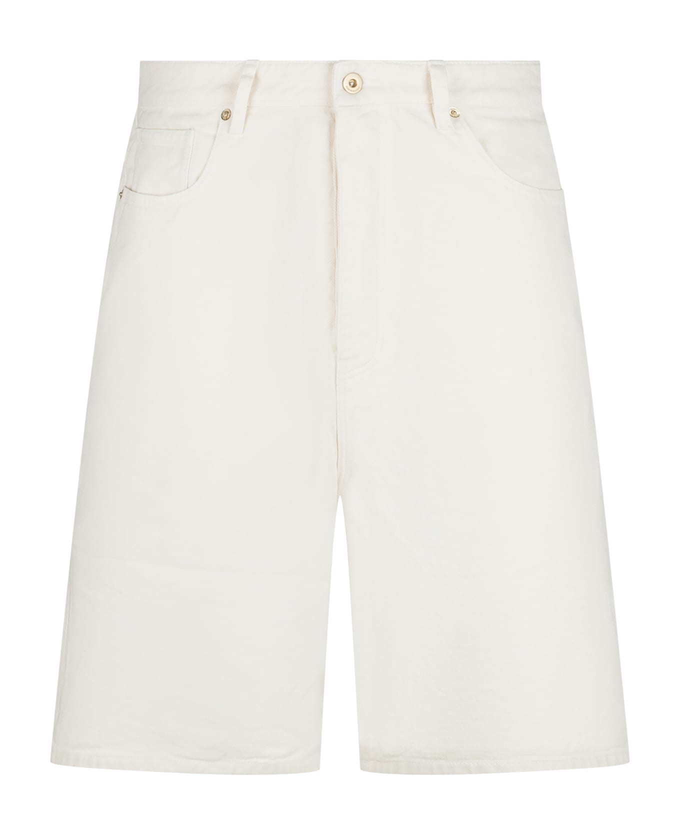 Shorts in jeans. Closure with buttons. Belt loops. Five pockets. Logo tag on the back.