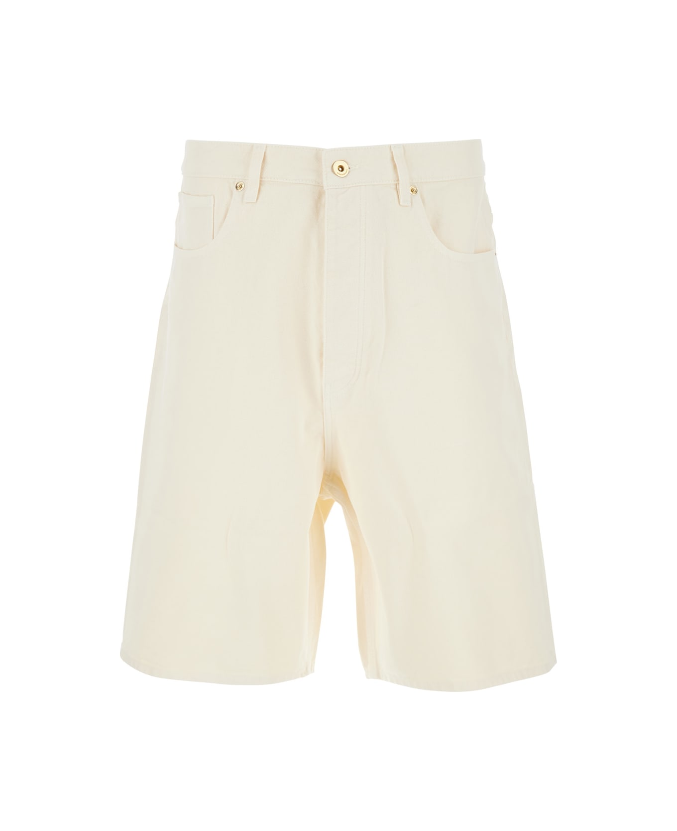 'le Short Baggy écru' White Shorts With Wide Leg And Logo Patch On The Rear In Cotton Man