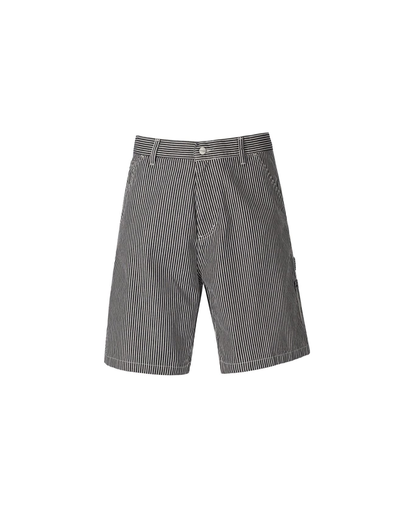 Terrell bermuda shorts by Carhartt Wip made of medium weight cotton with white and blue vertical striped pattern. It features cargo pockets, belt loops and a heart shaped logo patch. Regular waist, loose fit. Composition: 100% cotton.