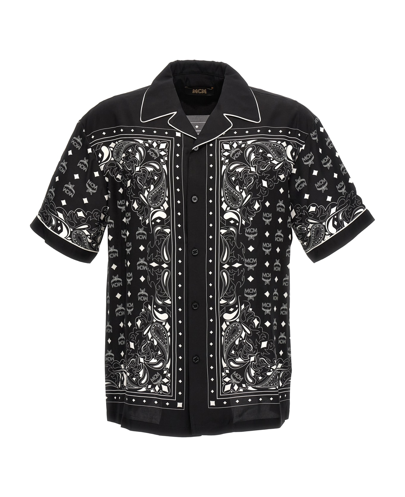 Bandana' silk blend shirt with all-over print, short sleeve model with contrast piping and button closure.