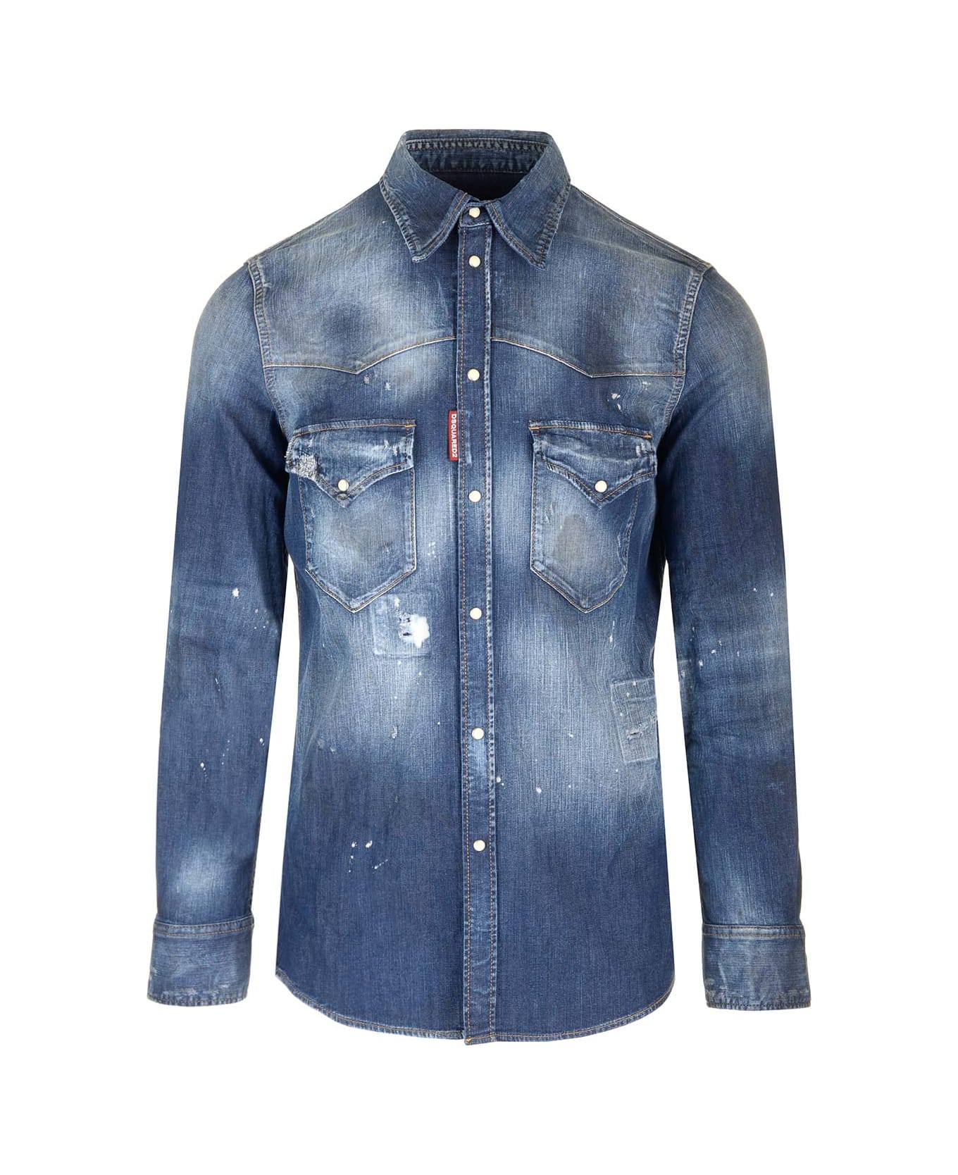 Western style denim shirt from Dsquared2, with snap buttons, chest pockets, slim fit and a distressed finish. Composition: 98% CO 2% EA