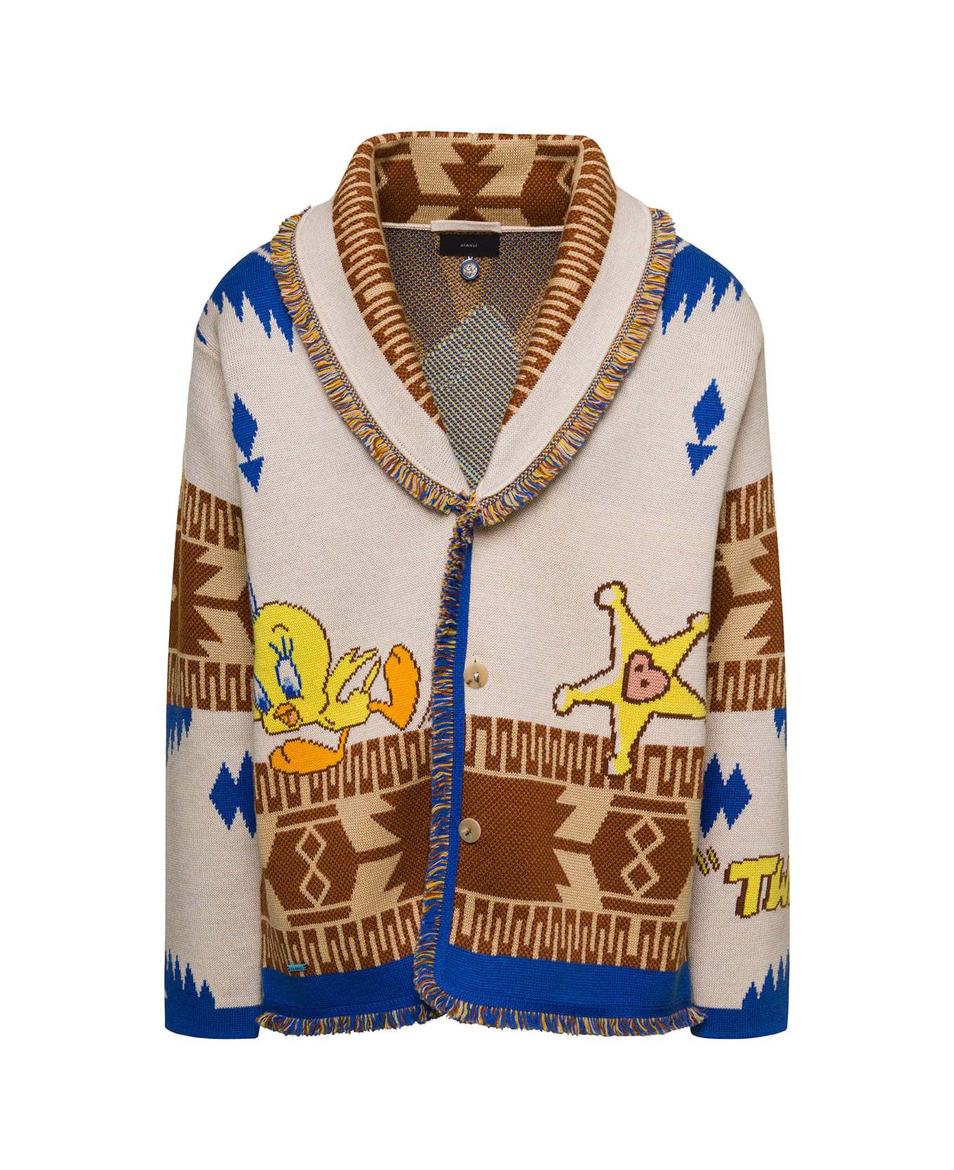 Multicolor Cardigan With Cowboy Tweety Jacquard In Wool Man